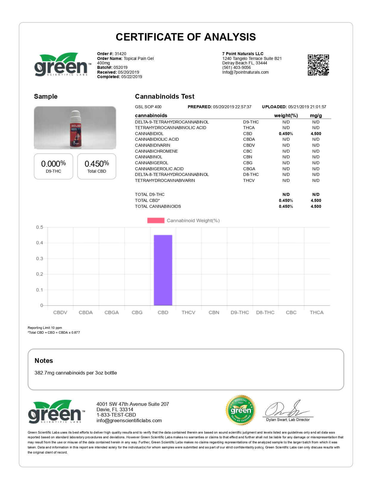 7 Point Naturals CBD Topical Roll-On Pain Gel Lab Report