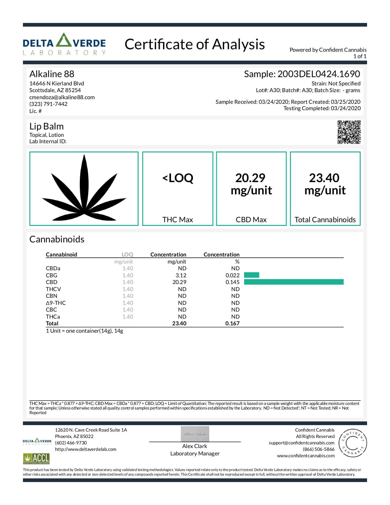 A88 CBD Topical Full Spectrum Lip Balm Lab Report
