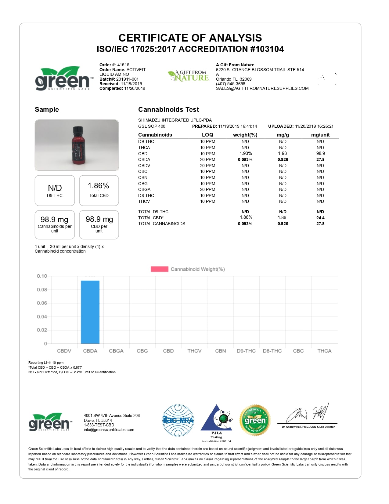 ActivFit CBD Drink Mixed Berry Protein Shot Lab Report important details about vaping products.