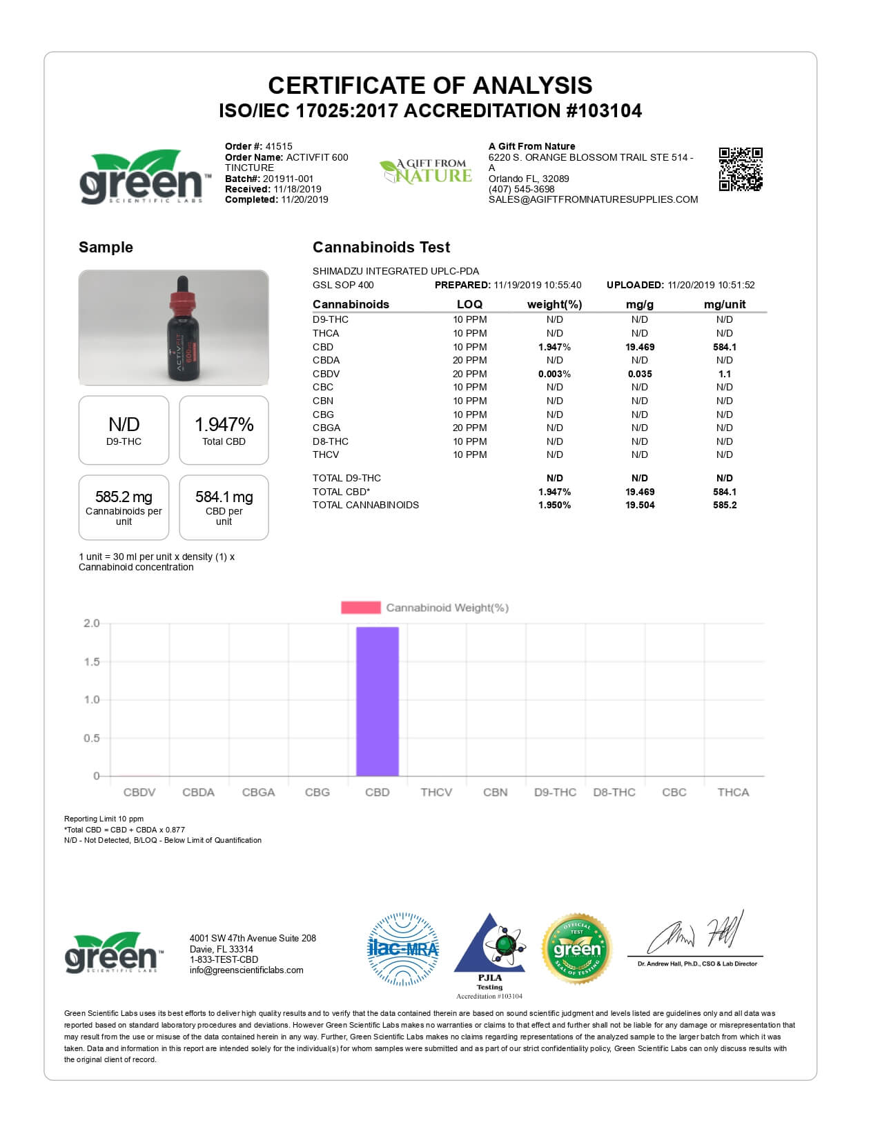 ActivFit CBD Tincture Isolate Lab Report