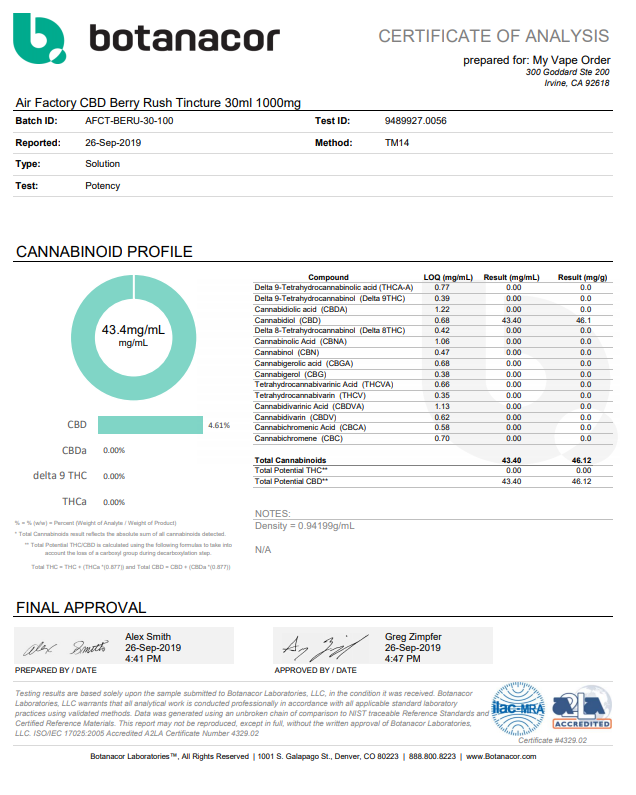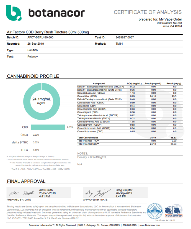 Air Factory CBD Berry Rush Vape Juice Lab Report has provided valid factual details affiliated to vaping and its products.