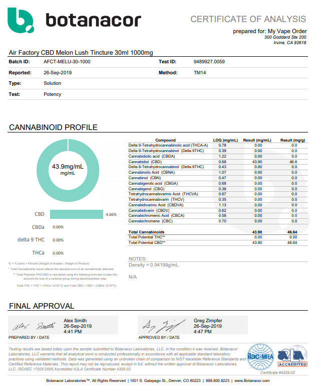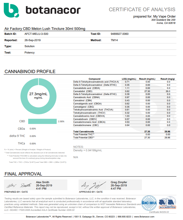 Air Factory CBD Melon Lush Vape Juice Lab Report for your best interest related to vaping and its particular products.