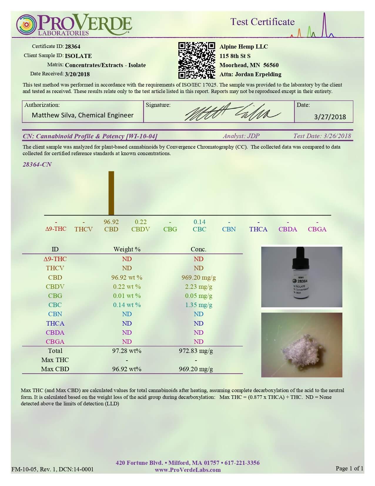 Alpine Hemp CBD Concentrate Isolate Lab Report