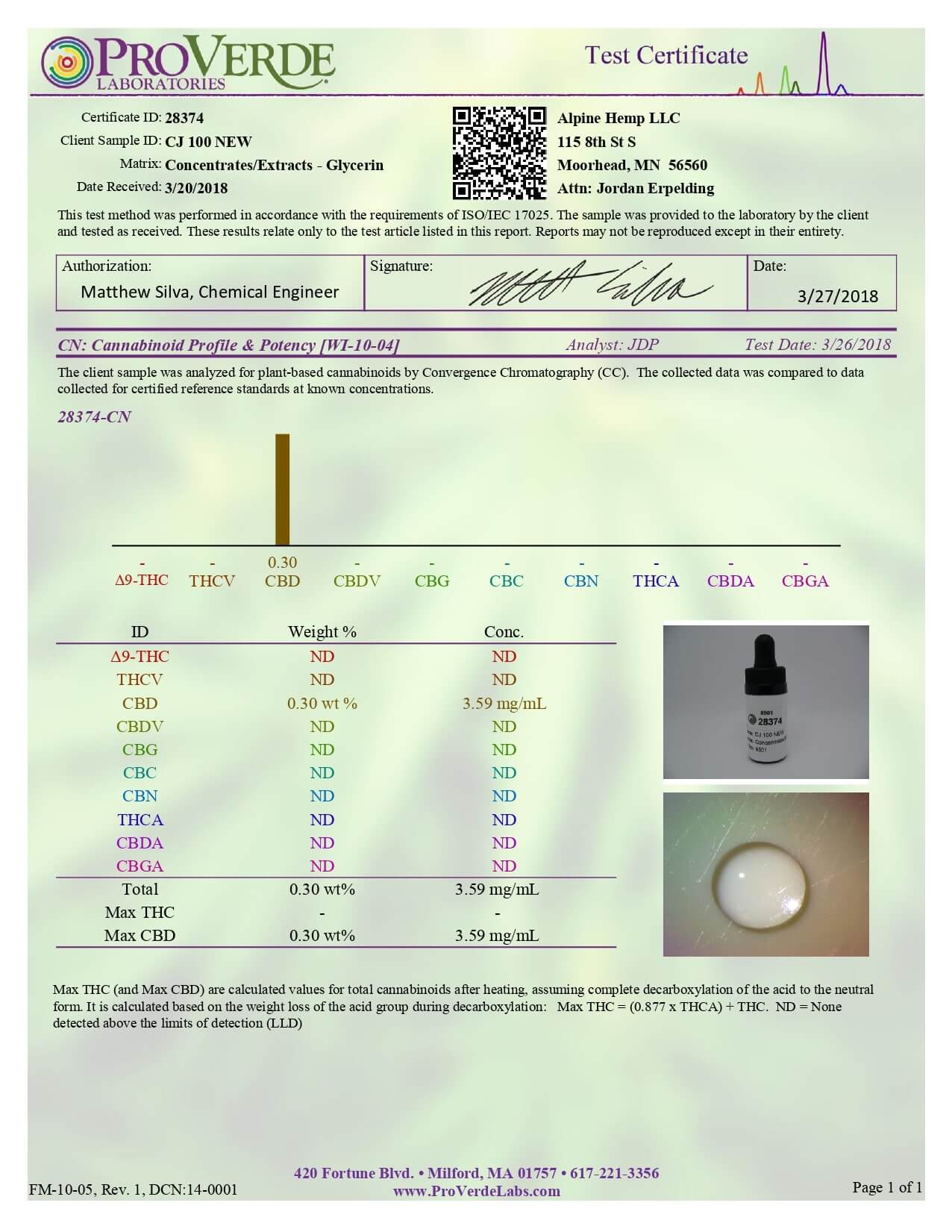 Alpine Hemp CBD Vape Caramel Junction Lab Report important details about vaping products.