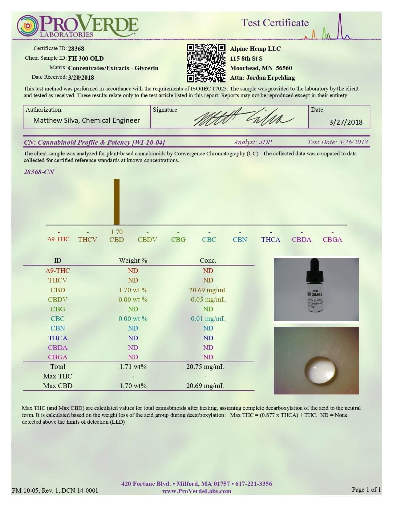 Alpine Hemp CBD Vape Flyin' Hawaiian Lab Report 300mg