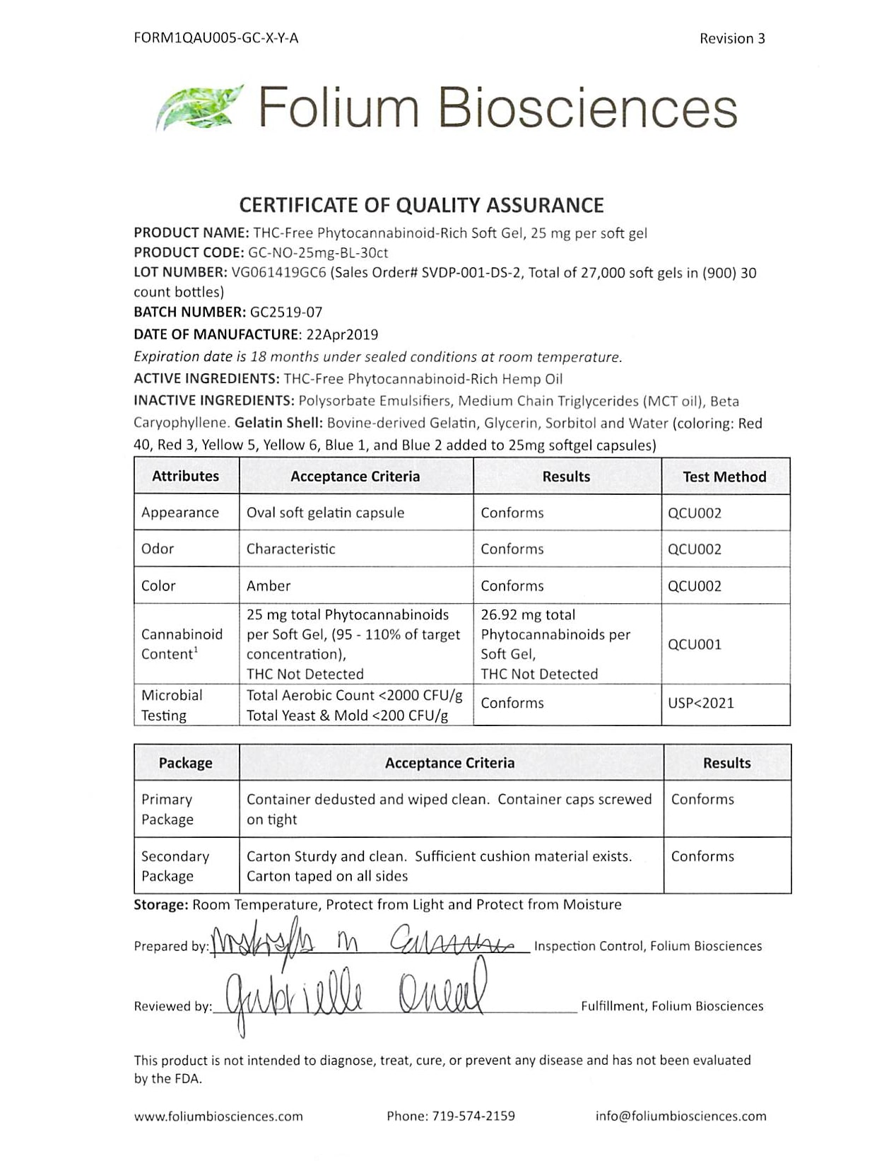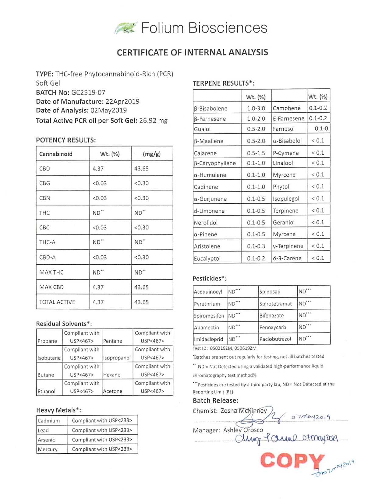 AmourCBD Soft Gel 30 Count Lab Report