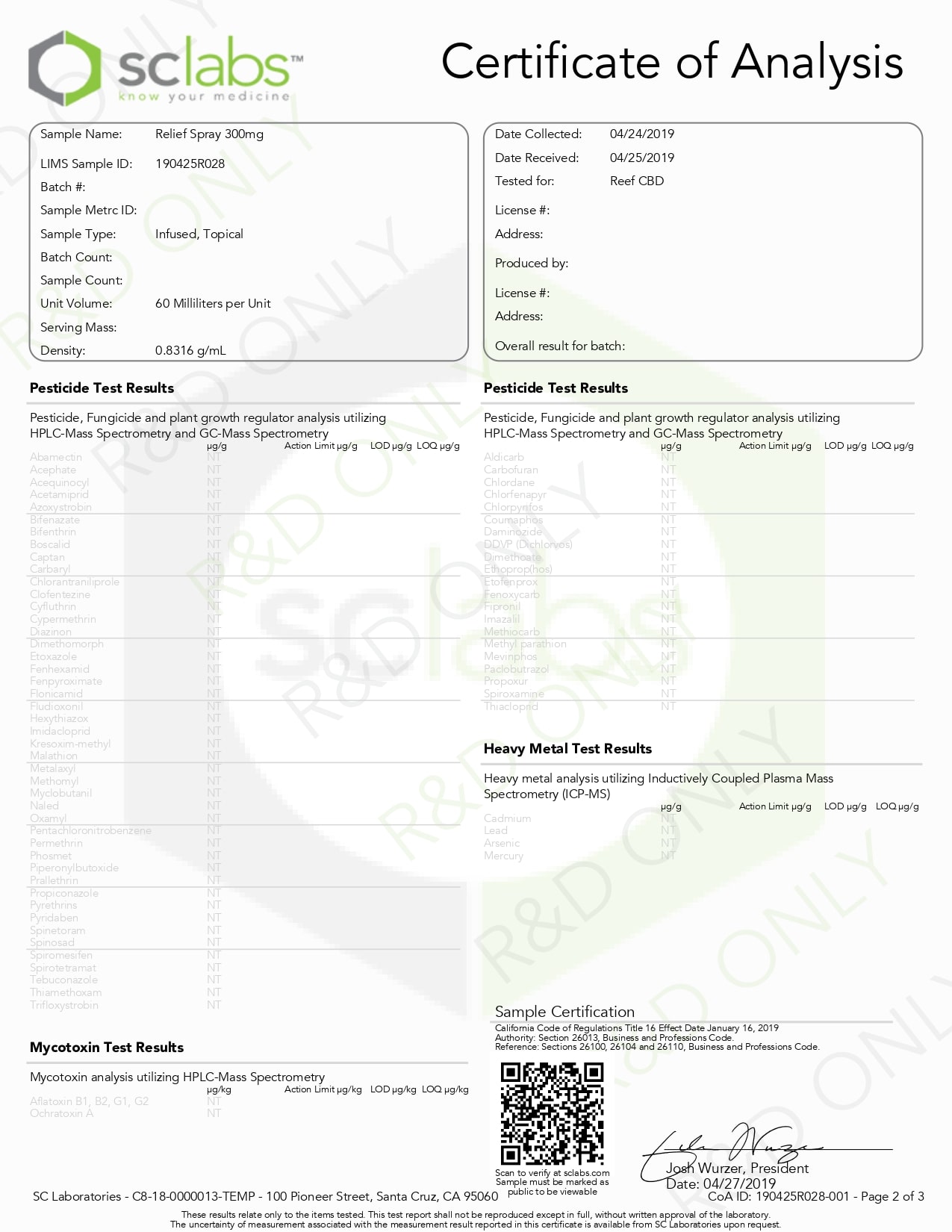 AndHemp CBD Oil Pain Spray Relief 300mg Lab Report