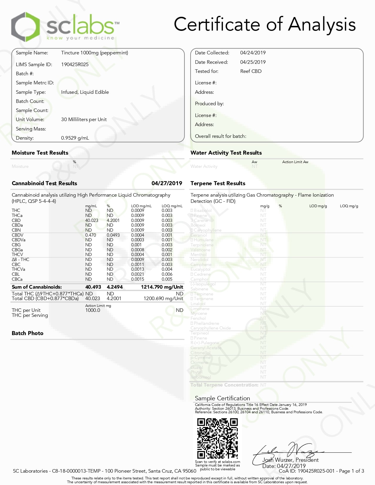 AndHemp CBD Tincture Peppermint 1000mg Lab Report