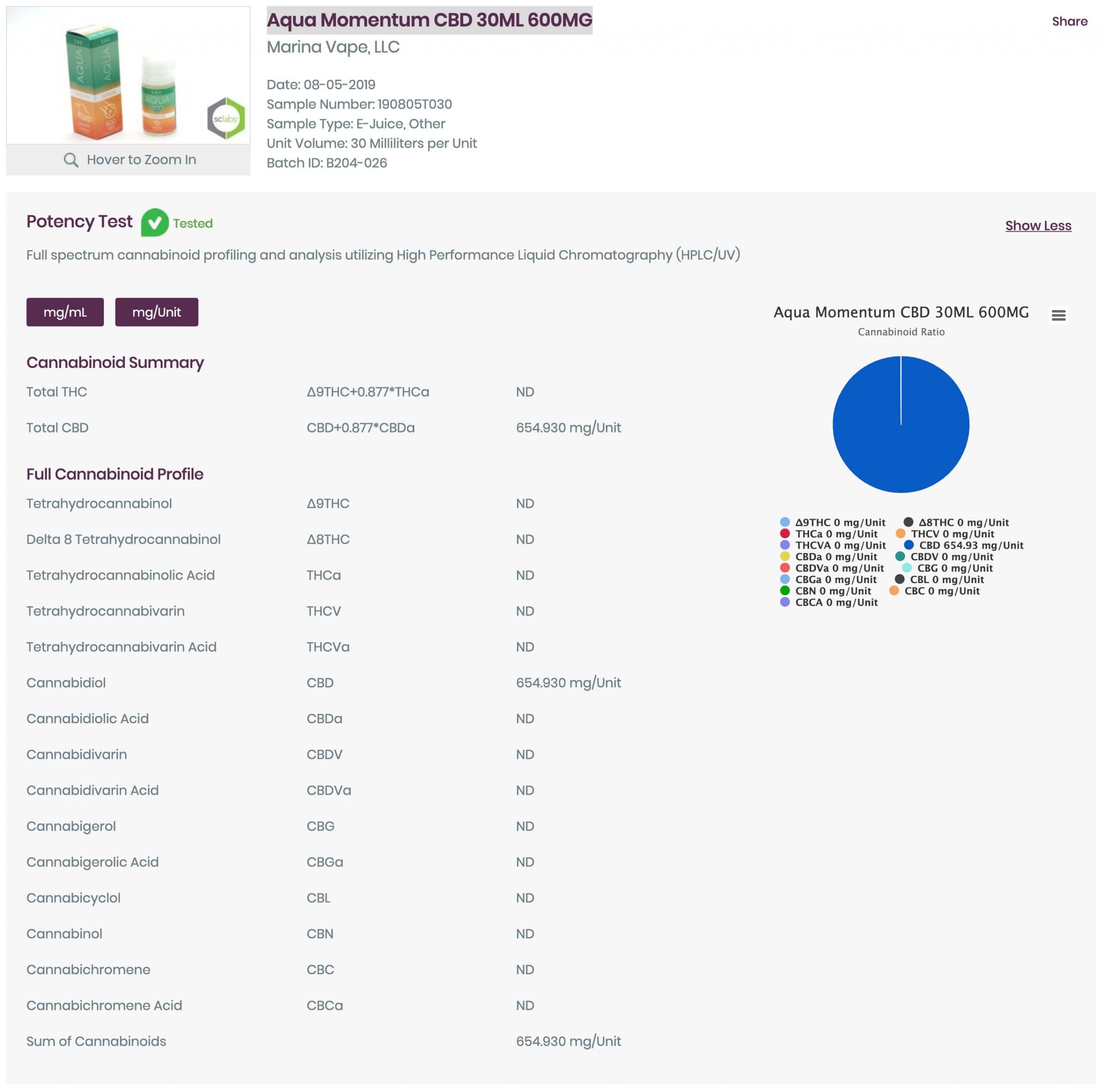 Lab Report for AQUA CBD Momentum Vape Juice instructions provided to educate the usage of the product.