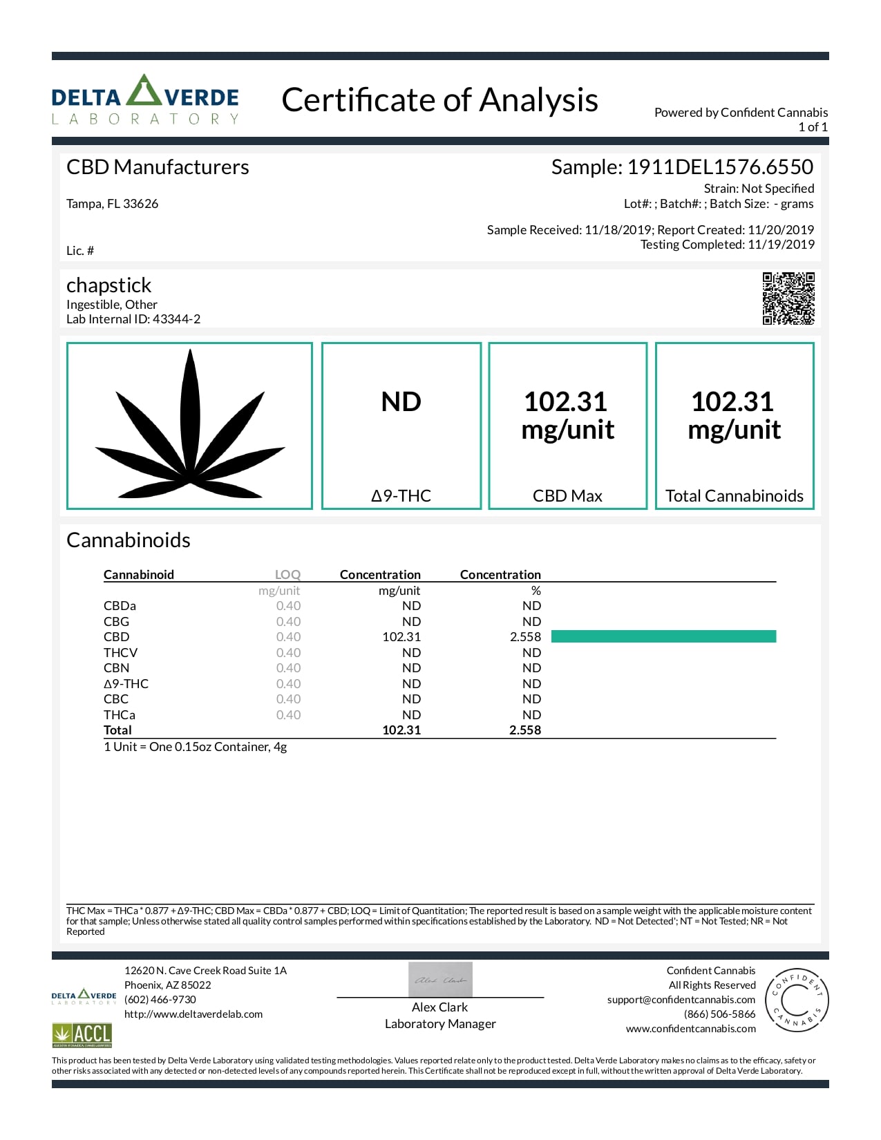 Avid Hemp CBD Topical Chapstick Peppermint Lab Report