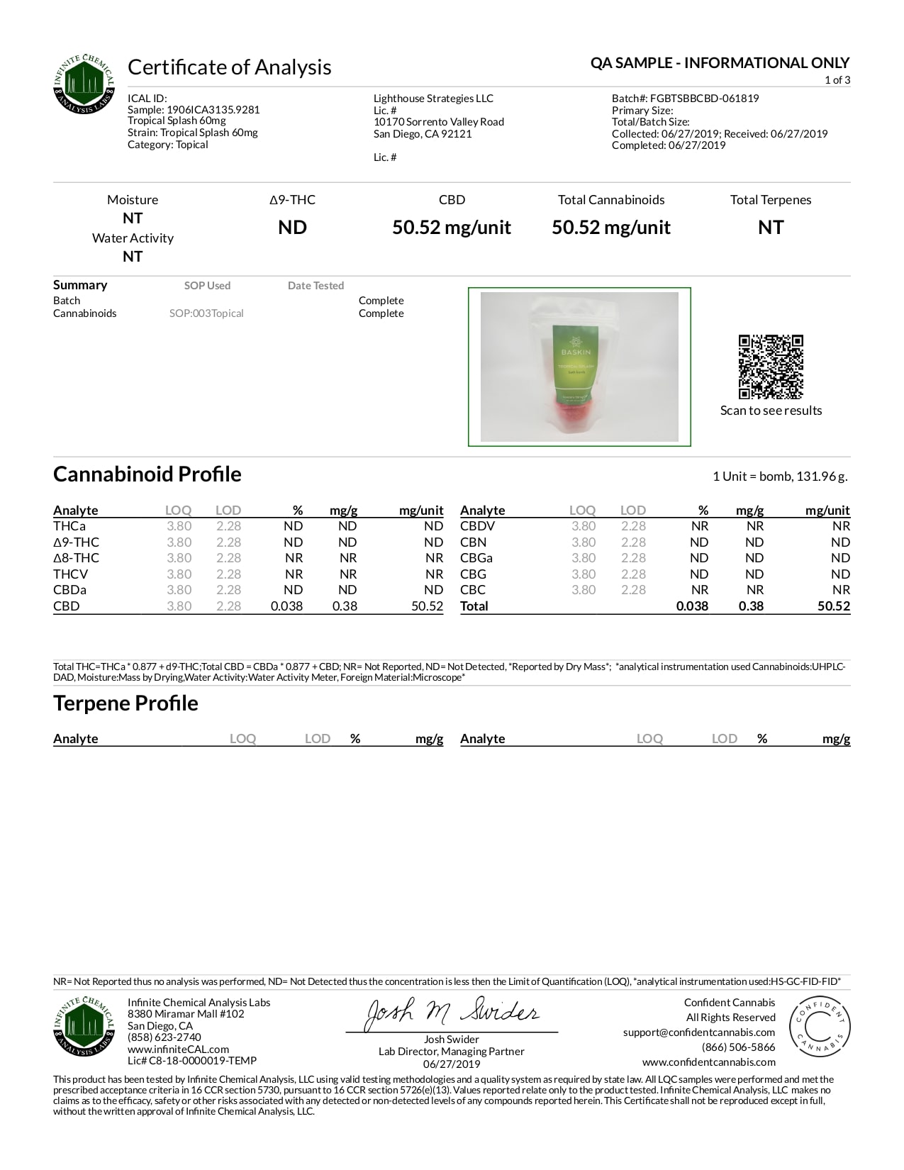 Baskin CBD Bath Tropical Splash Bath Bomb Lab Report important details about vaping products.
