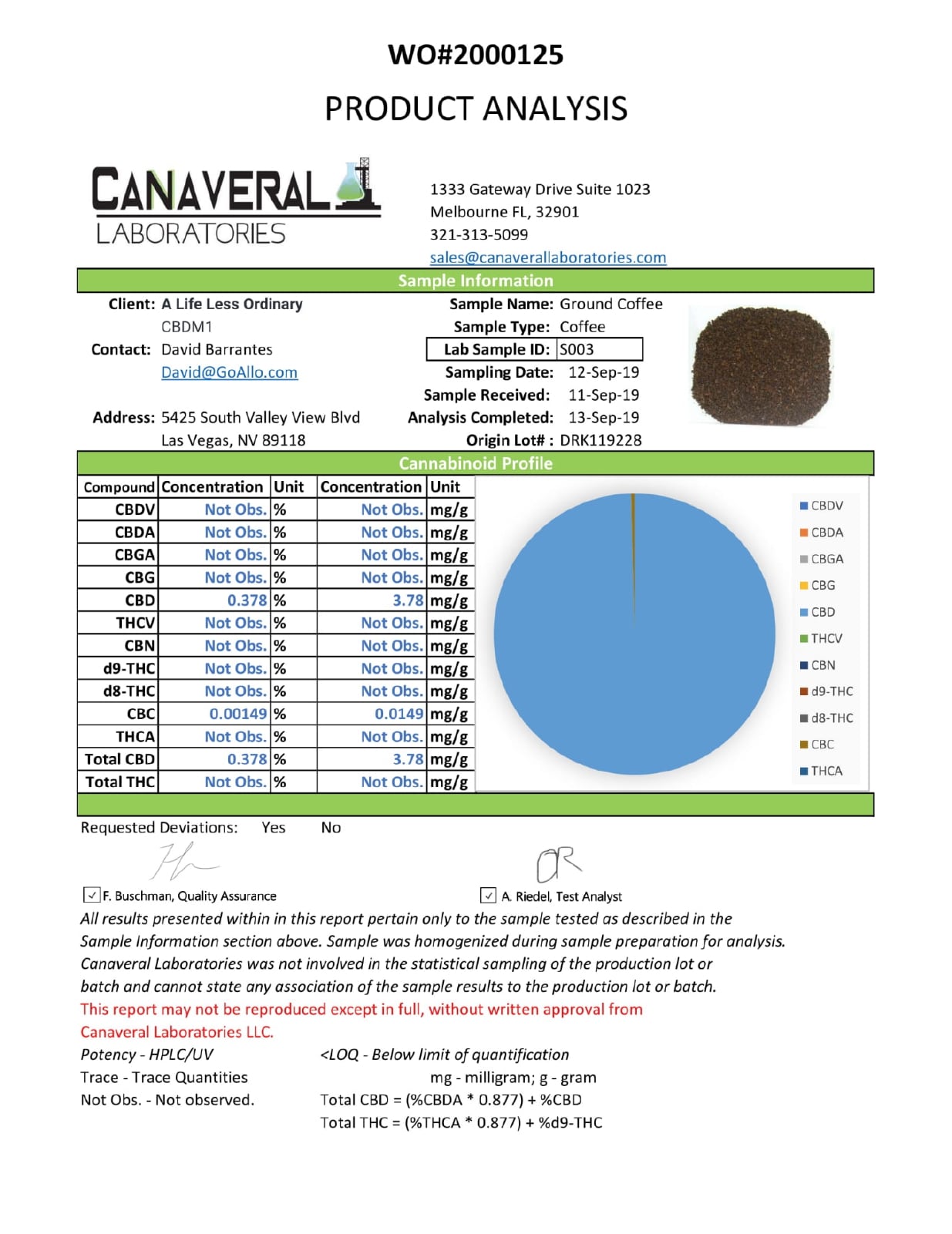 Bean & Bud CBD Coffee Bliss Lab Report