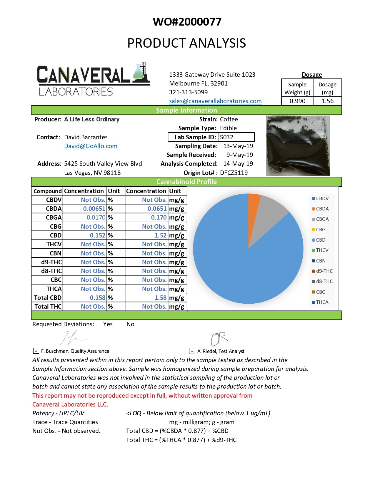 Bean & Bud CBD Coffee Rise Lab Report conducting specific details related to vapes products.