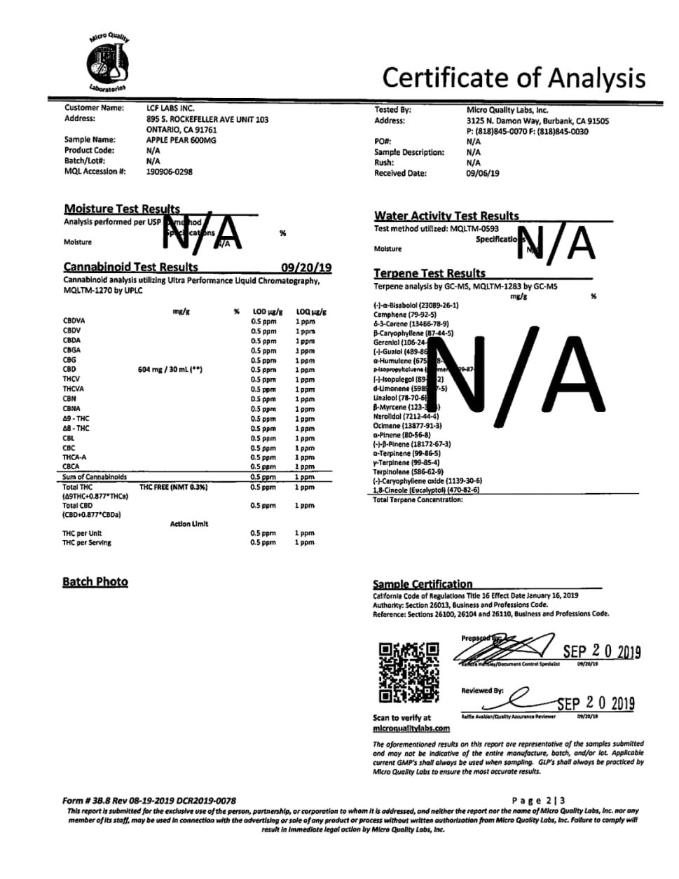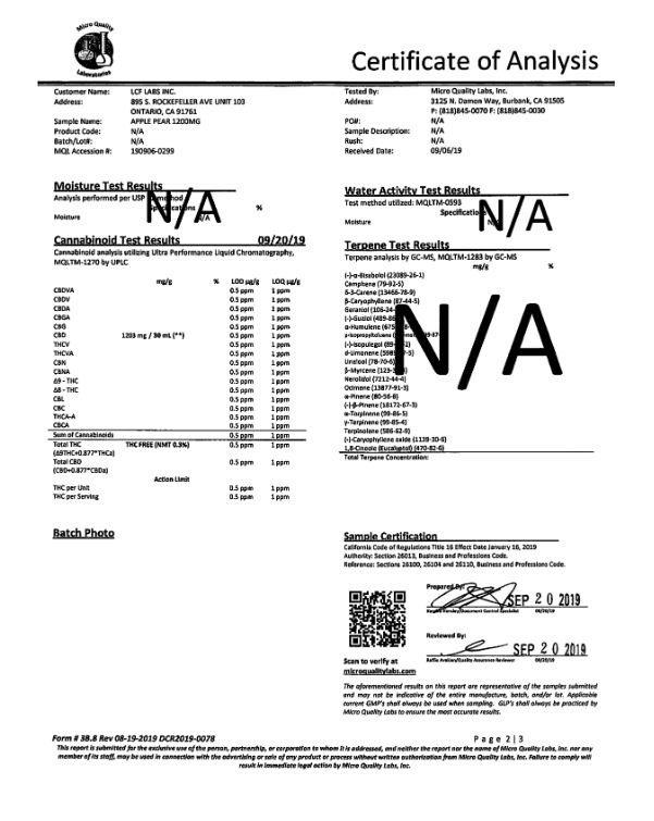 BIONATRL Apple Pear CBD Tincture Lab Reports test results with reference to CBD products.