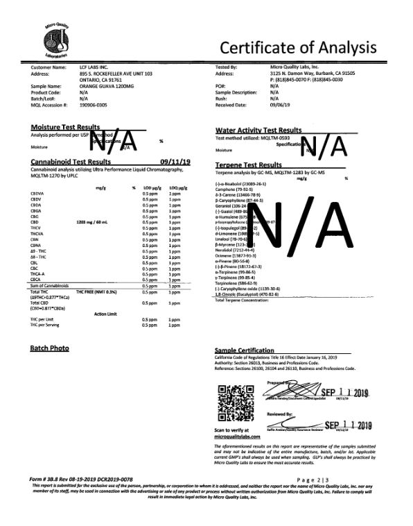 BIONATRL Orange Guava Lab Report CBD Vape eLiquid 1200mg