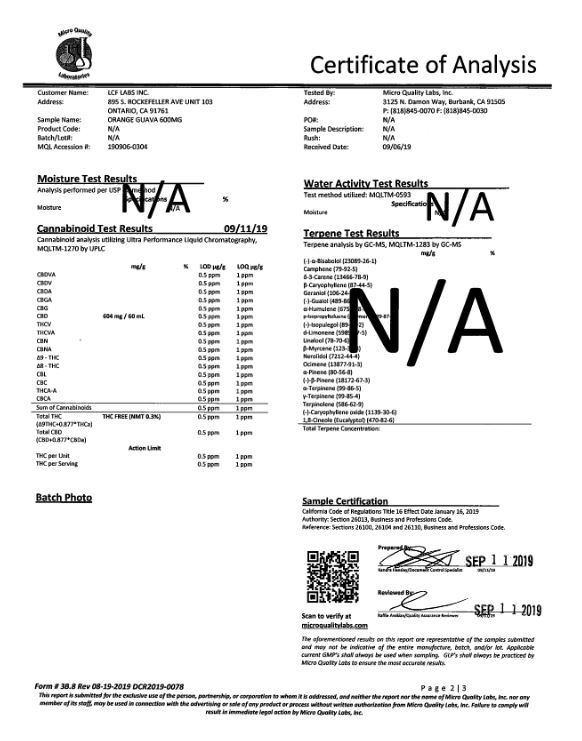 BIONATRL Orange Guava Lab Report CBD Vape eLiquid 600mg