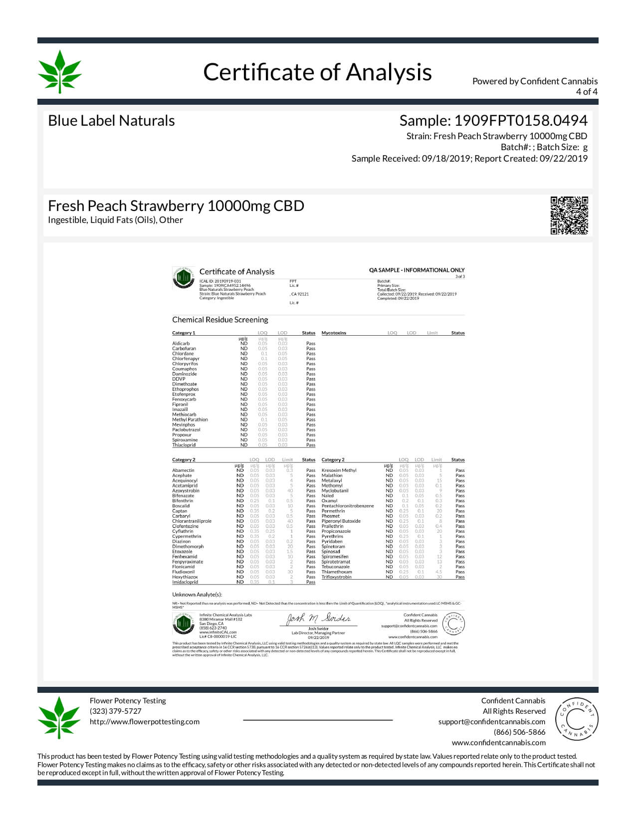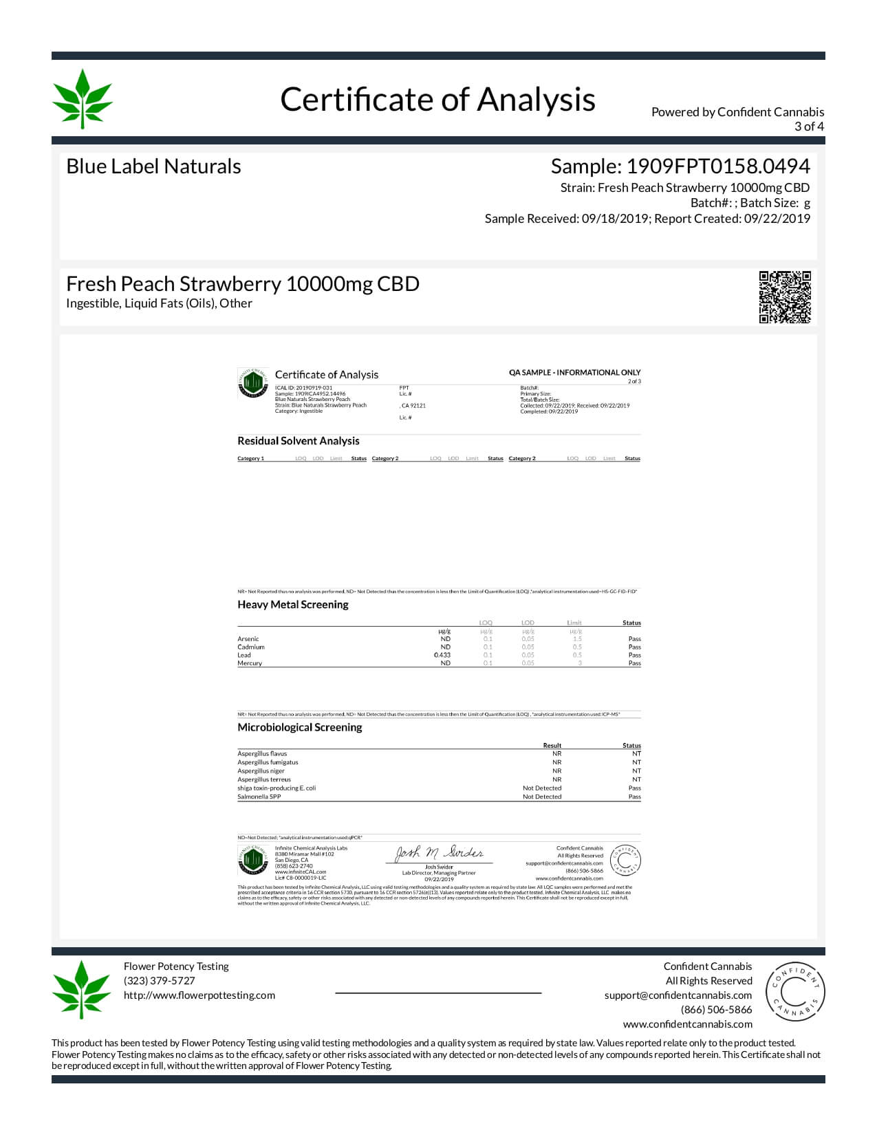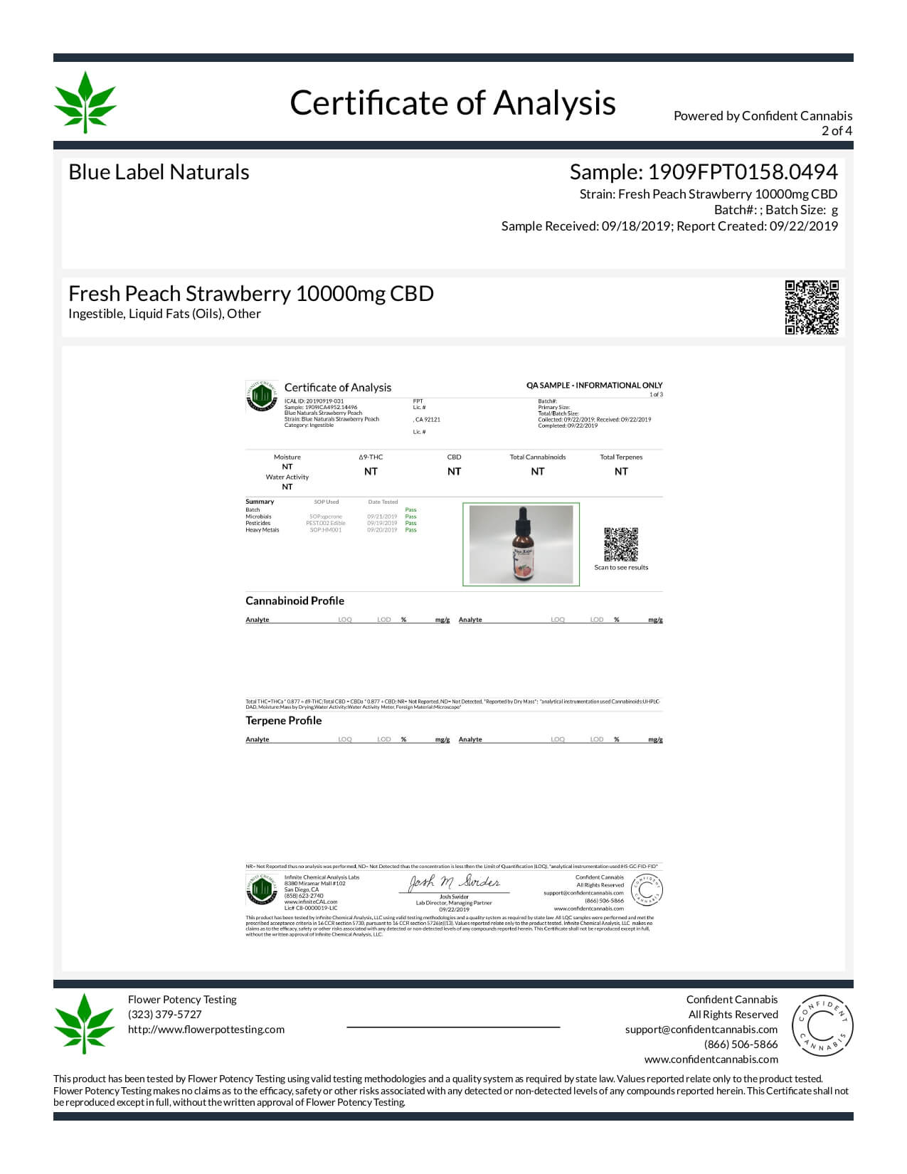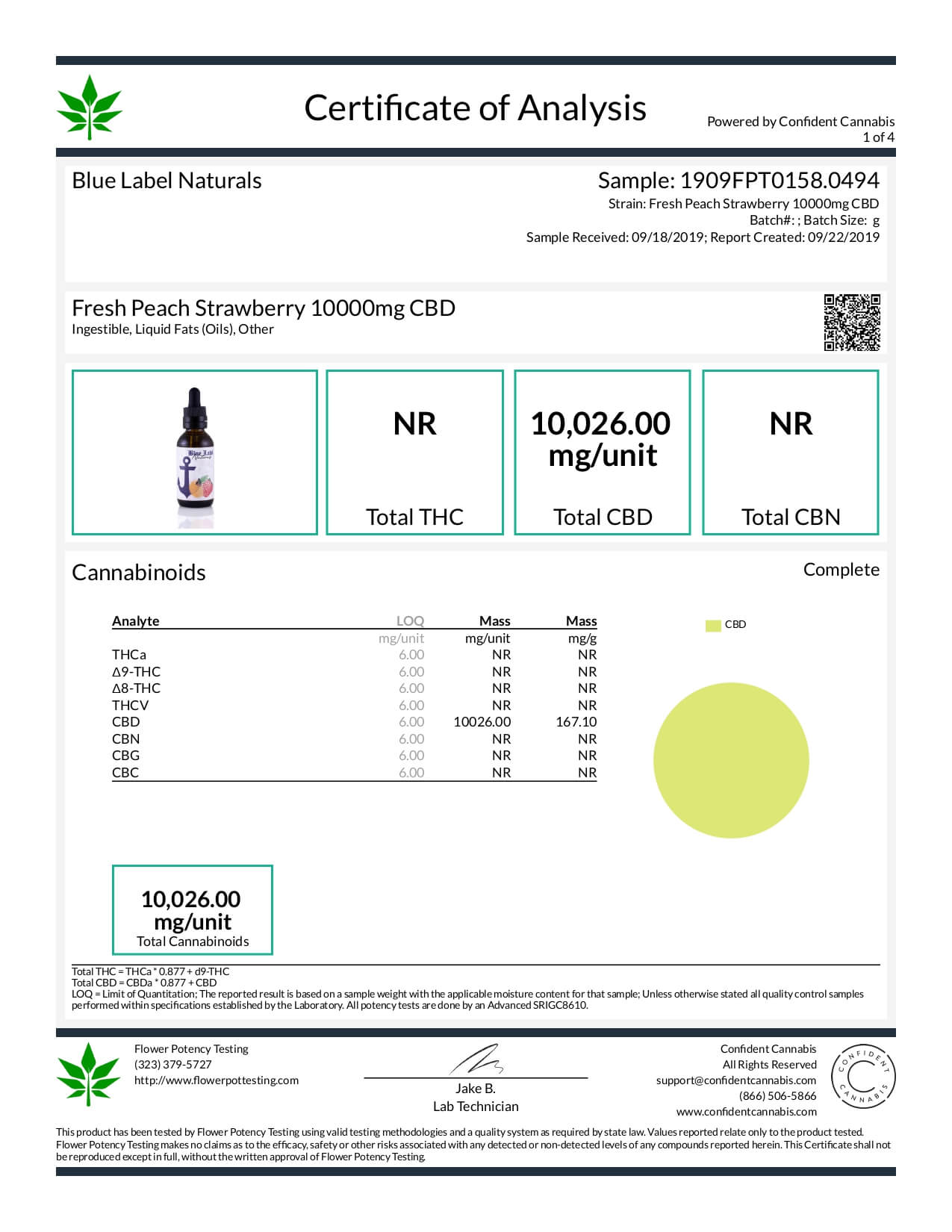 Blue Label CBD Tincture Peach and Strawberry 10000mg Lab Report