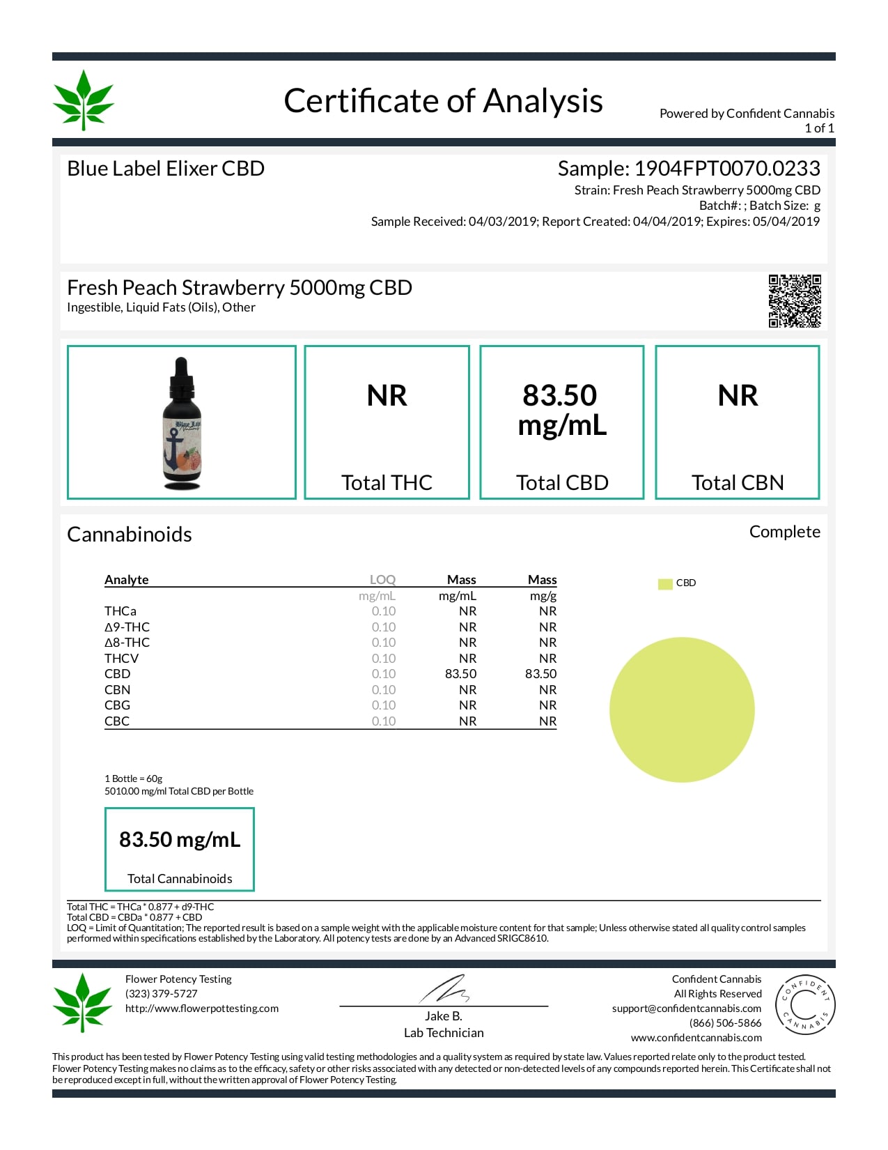 Blue Label CBD Tincture Peach and Strawberry Lab Report