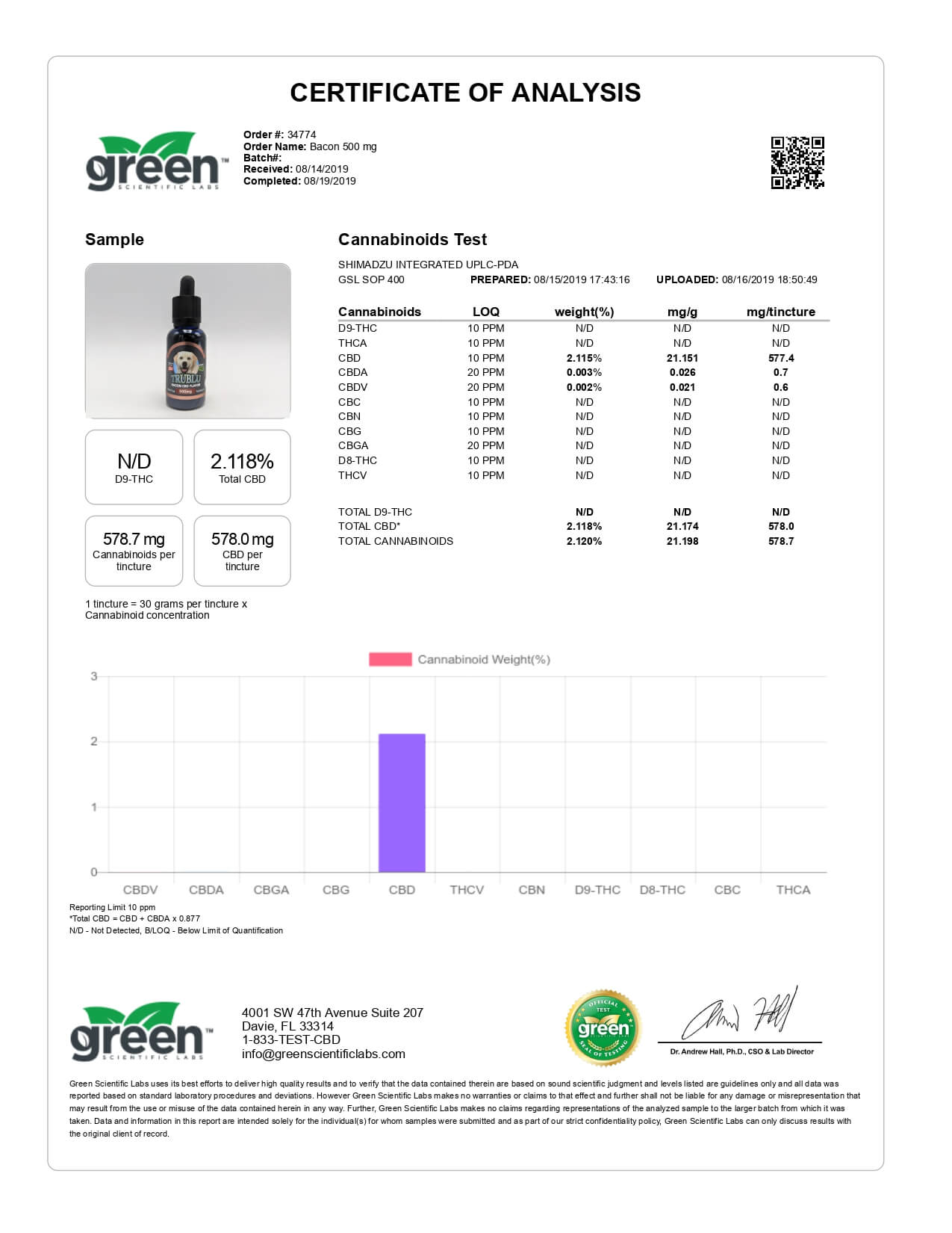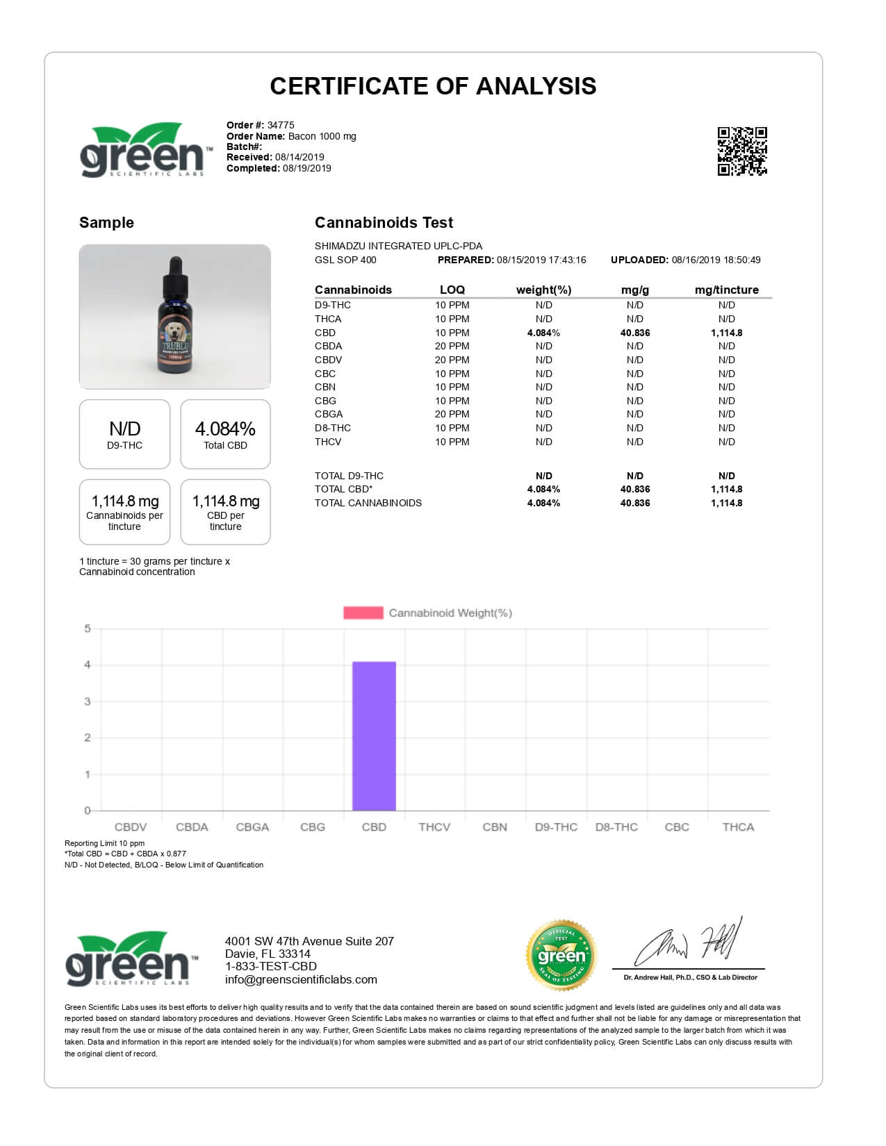 Blue Moon Hemp CBD Pet Tincture Tru Blu Bacon Dog Tincture Lab Report important details about vaping products.