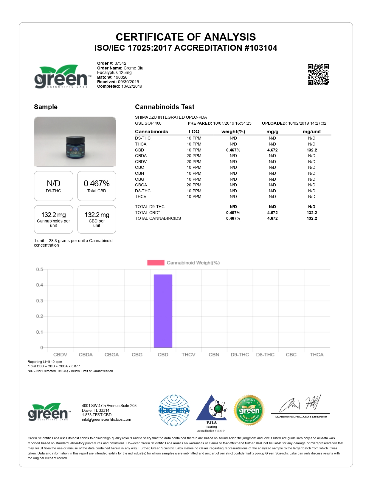 Blue Moon Hemp CBD Topical Eucalyptus Salve Lab Report