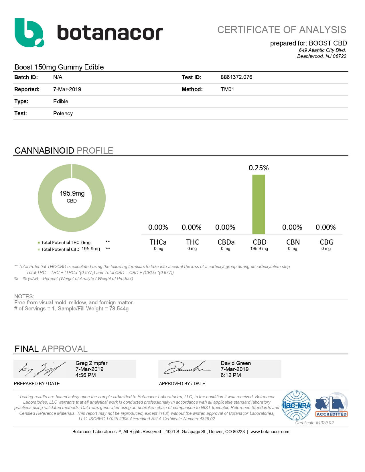BoostCBD CBD Edible Vegan Gummies Lab Report important details about vaping products.