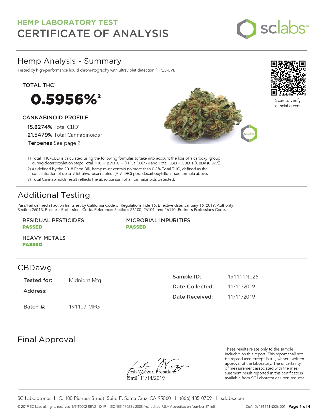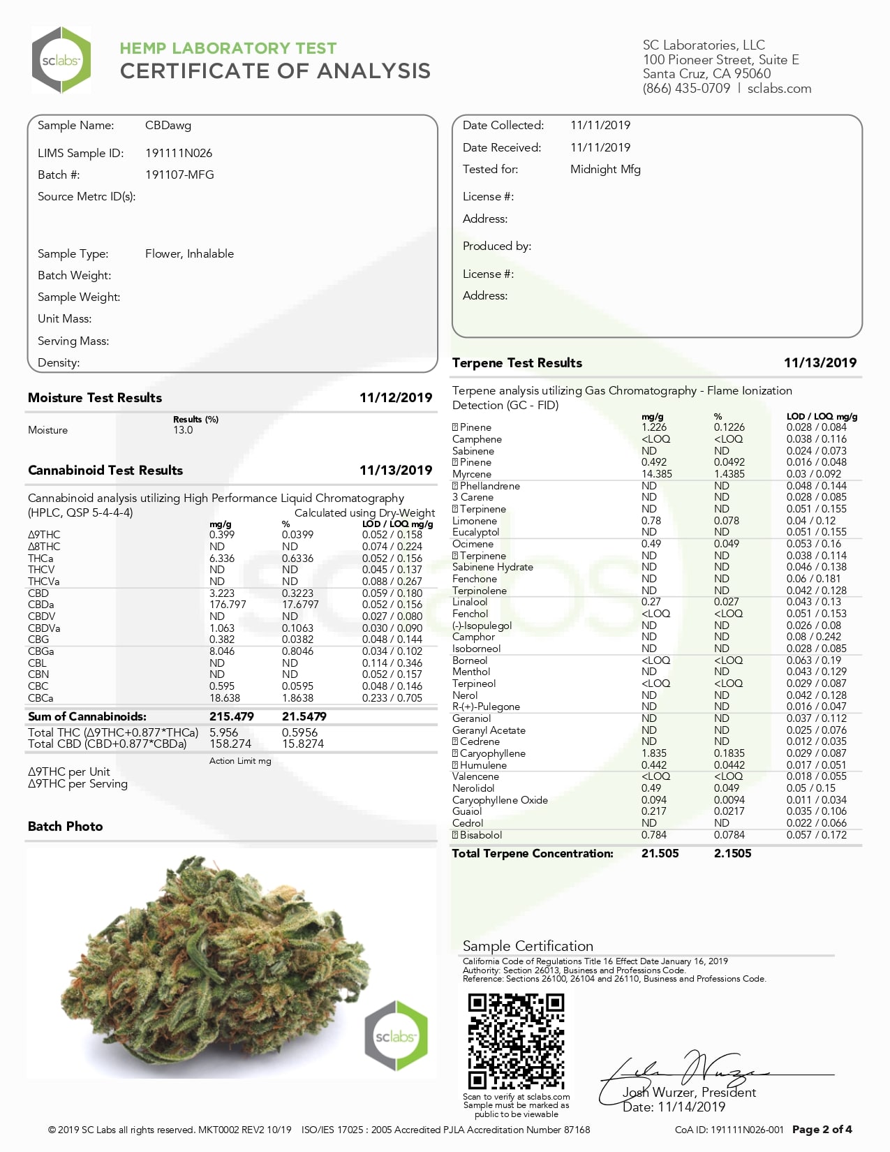 CANNA RIVER CBD CBDAWG Lab Report Hemp Flower