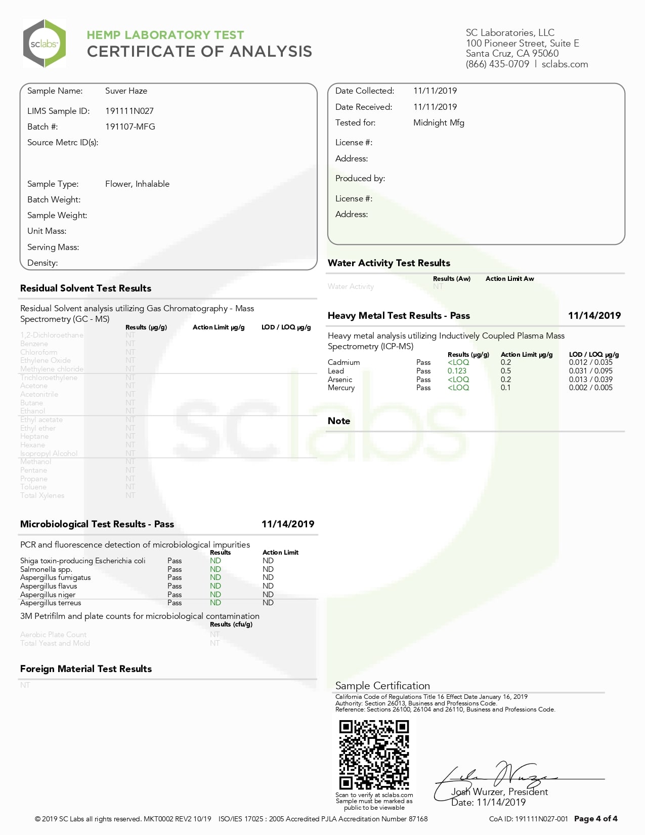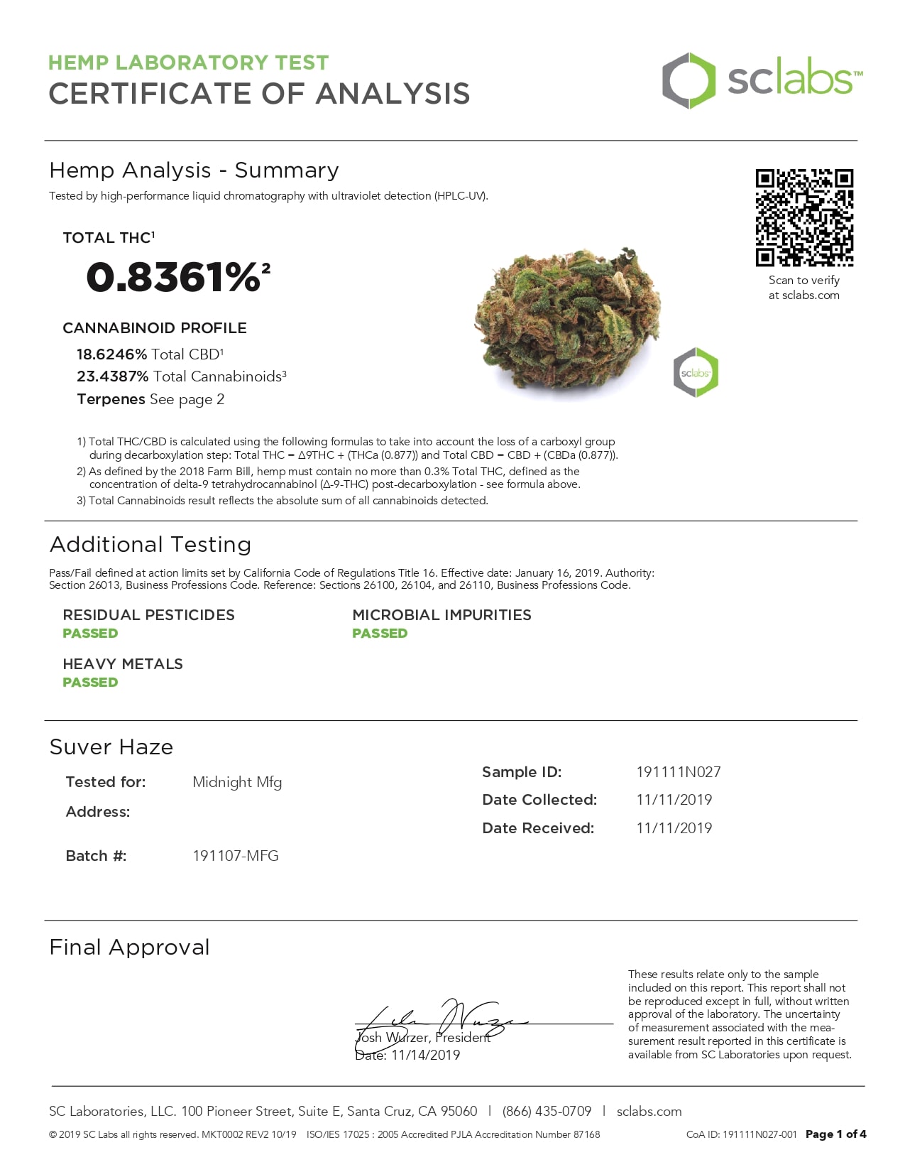 CANNA RIVER CBD Hemp Flower Suver Haze Lab Reports test results with reference to CBD products.
