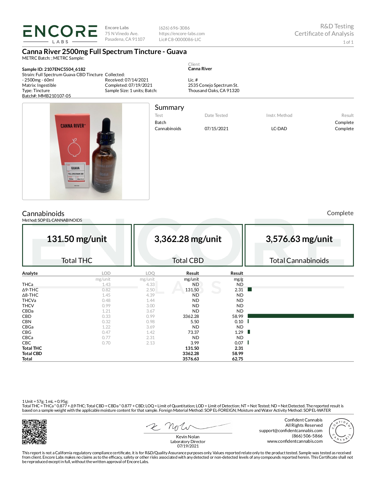 Canna River CBD Tincture Full Spectrum Guava Lab Report 2500mg