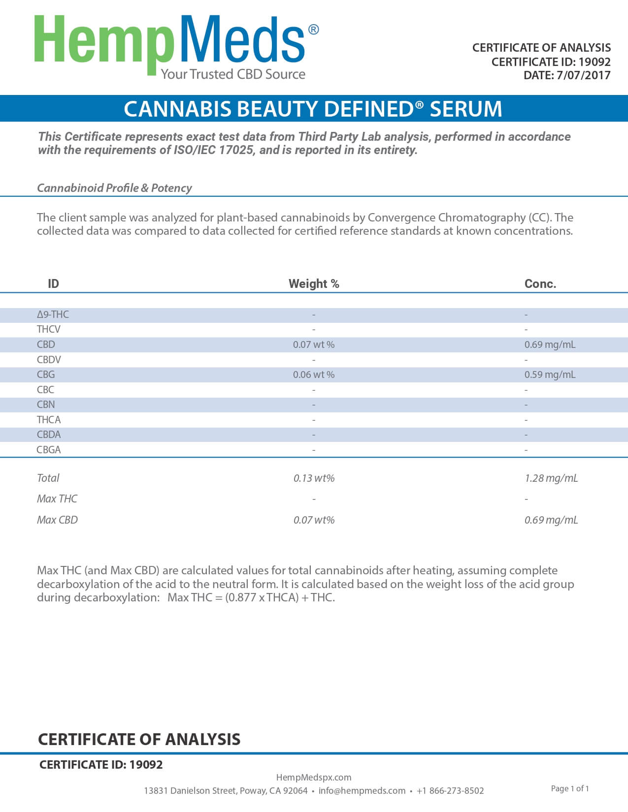 Cannabis Beauty Defined CBD Topical Day & Night Serum Lab Report important details about vaping products.