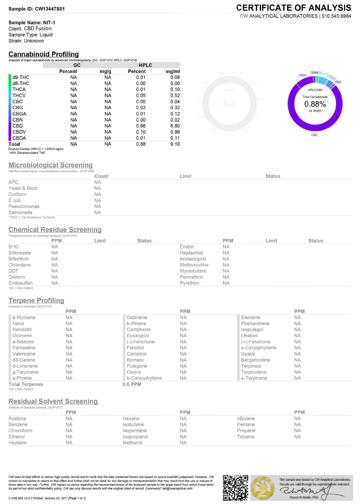 CBD Fusion Hemp Headshots 90mg Lab Report