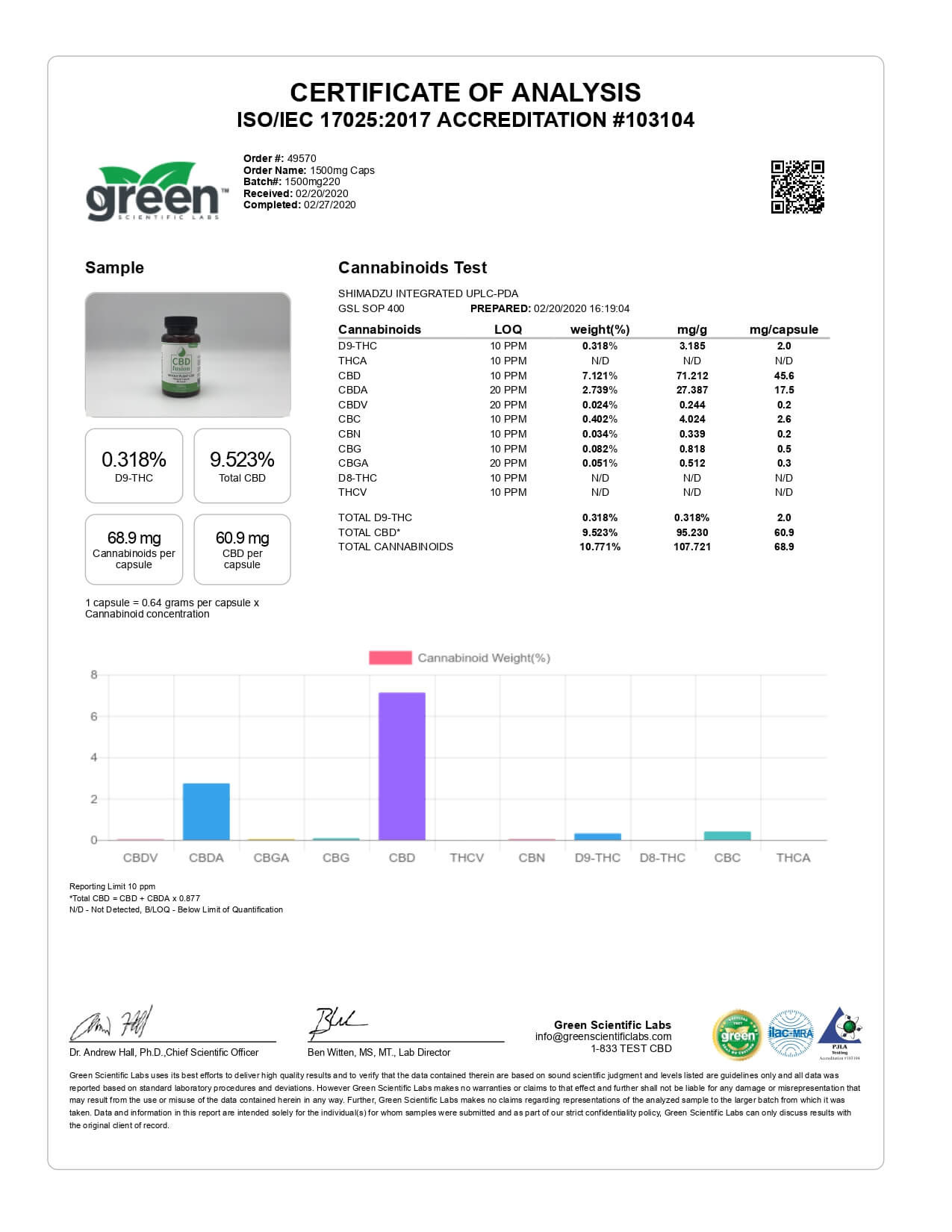 CBD Fusion Whole Plant Caps Lab Report 1500mg