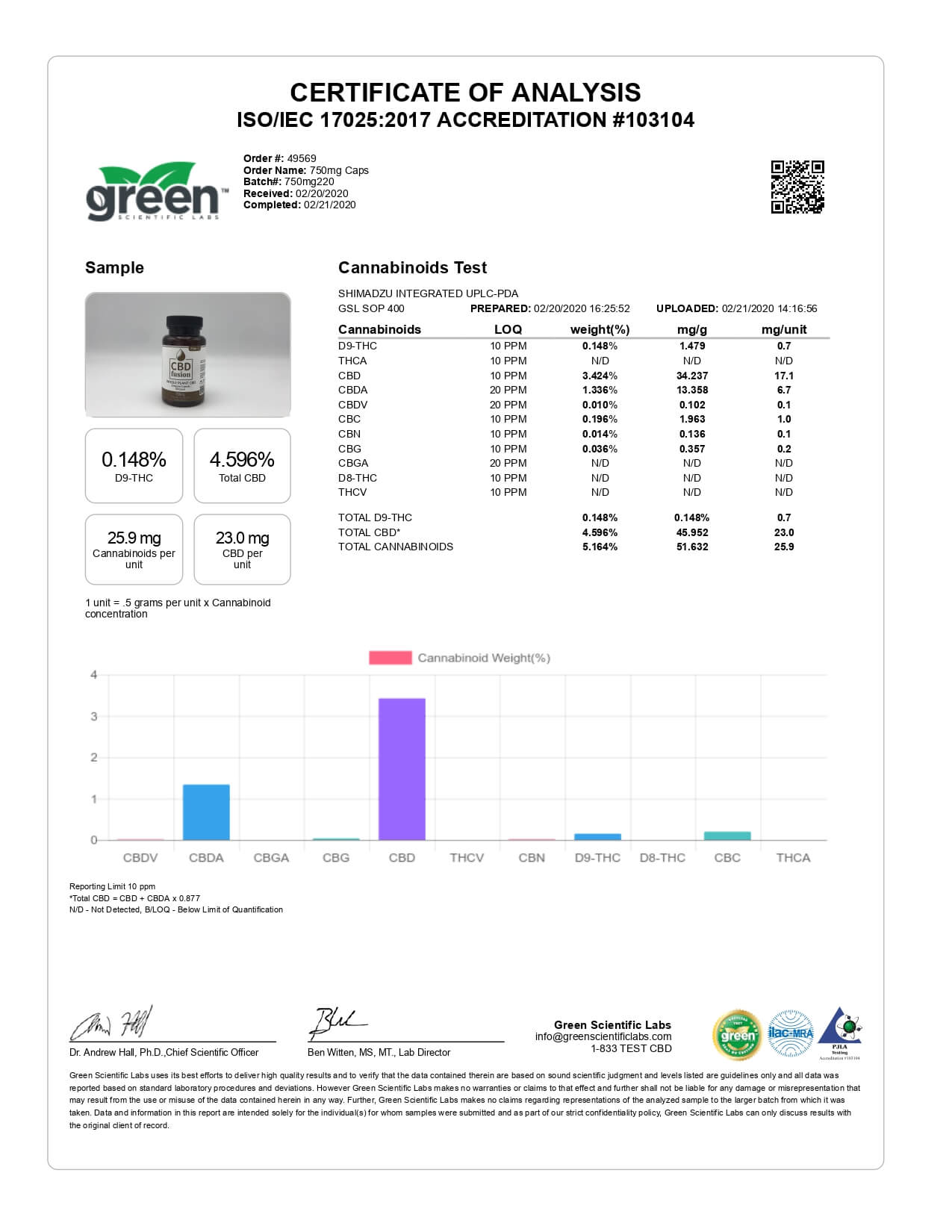 CBD Fusion Whole Plant Caps Lab Report 750mg