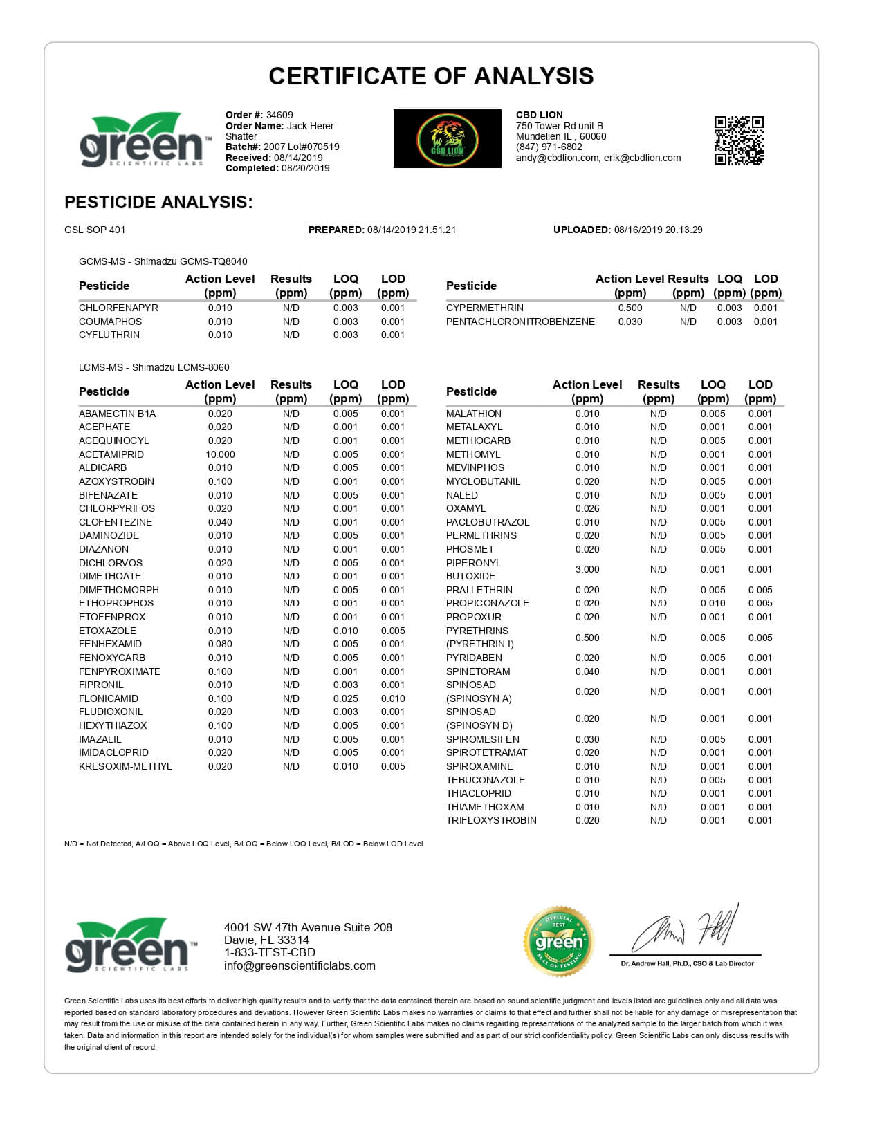 CBD Lion CBD Concentrate Jack Herer Shatter 1g Lab Report