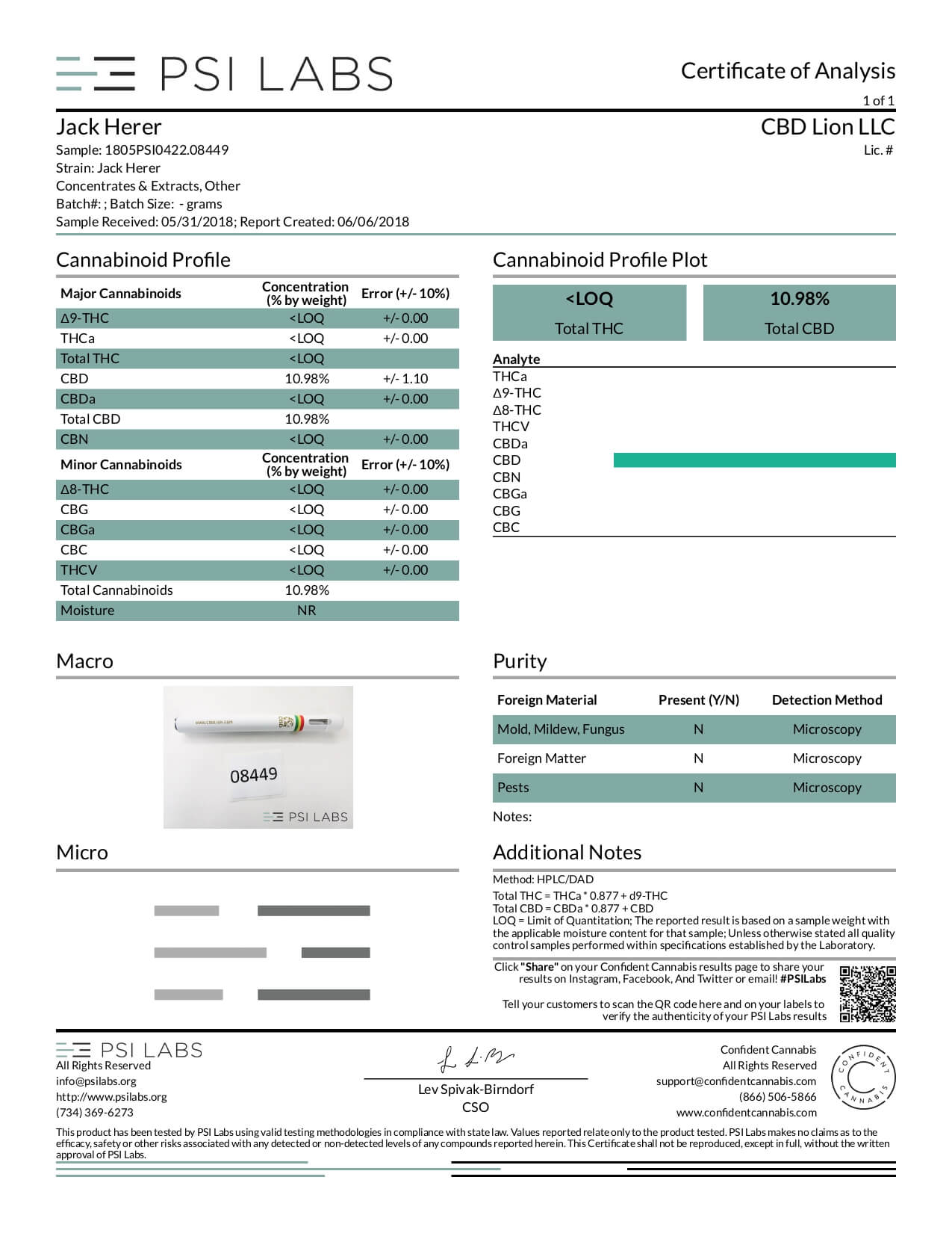 CBD Lion CBD Disposable Vape Pen Jack Herer Lab Report important details about vaping products.