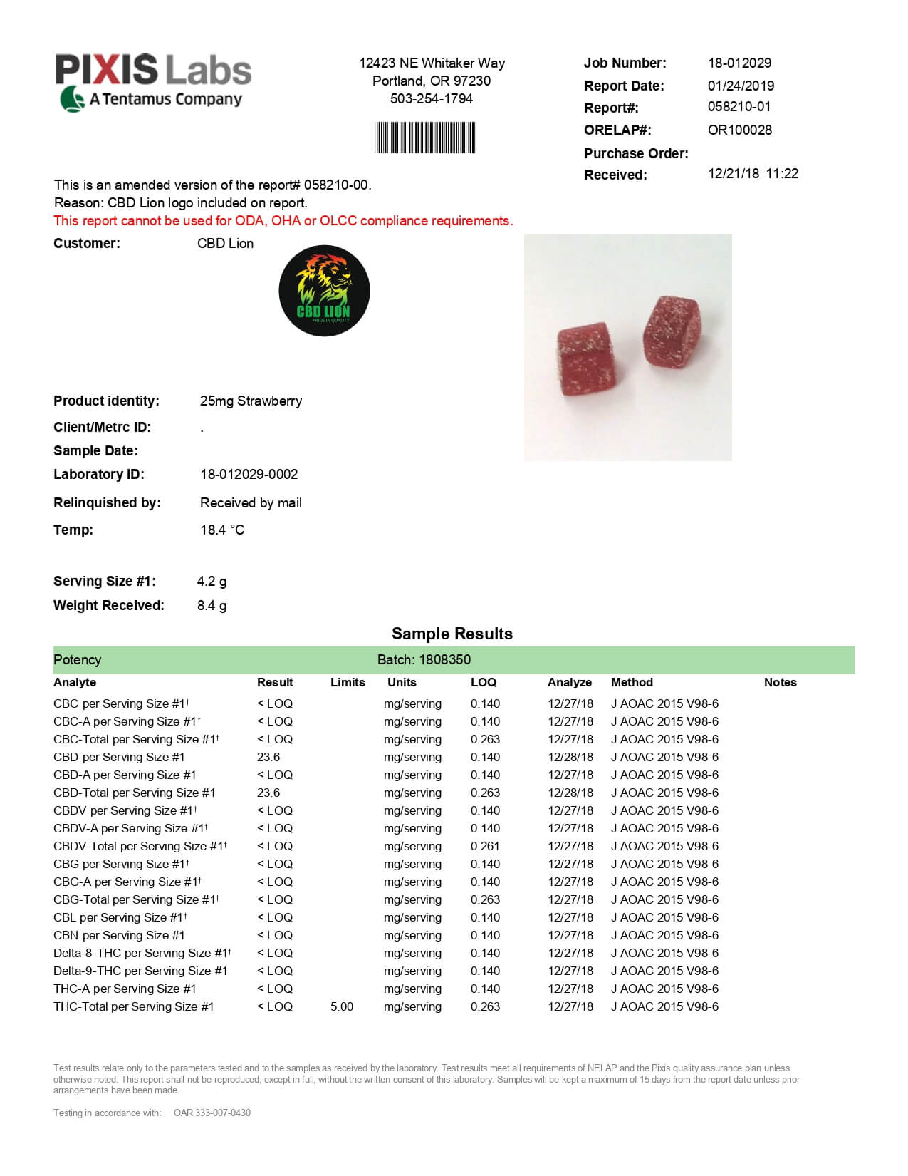 CBD Lion CBD Edible Strawberry Gummies Lab Report