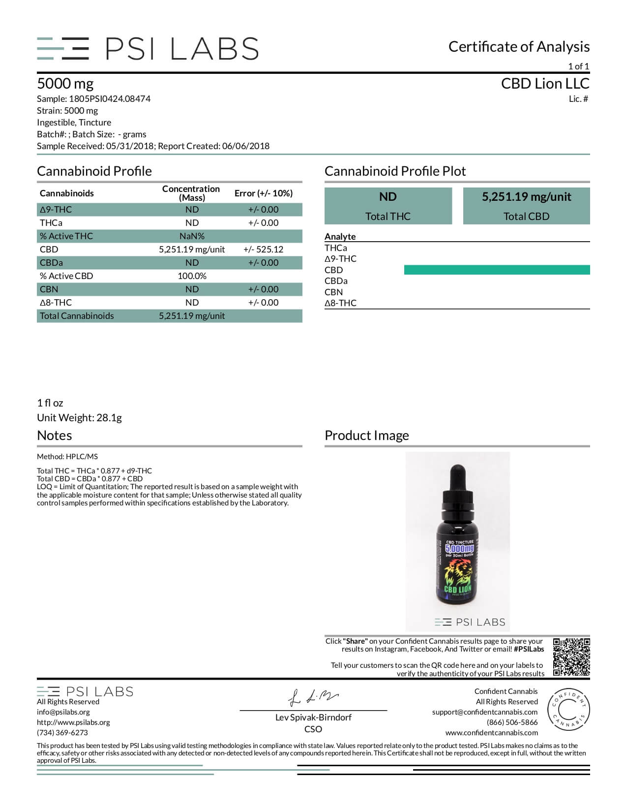 CBD Lion CBD Tincture Oil 5000mg Lab Report