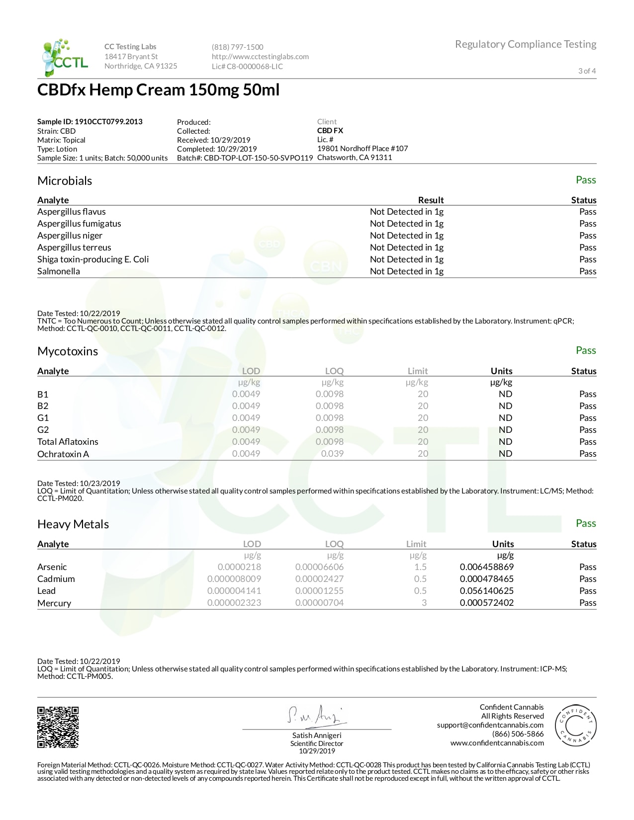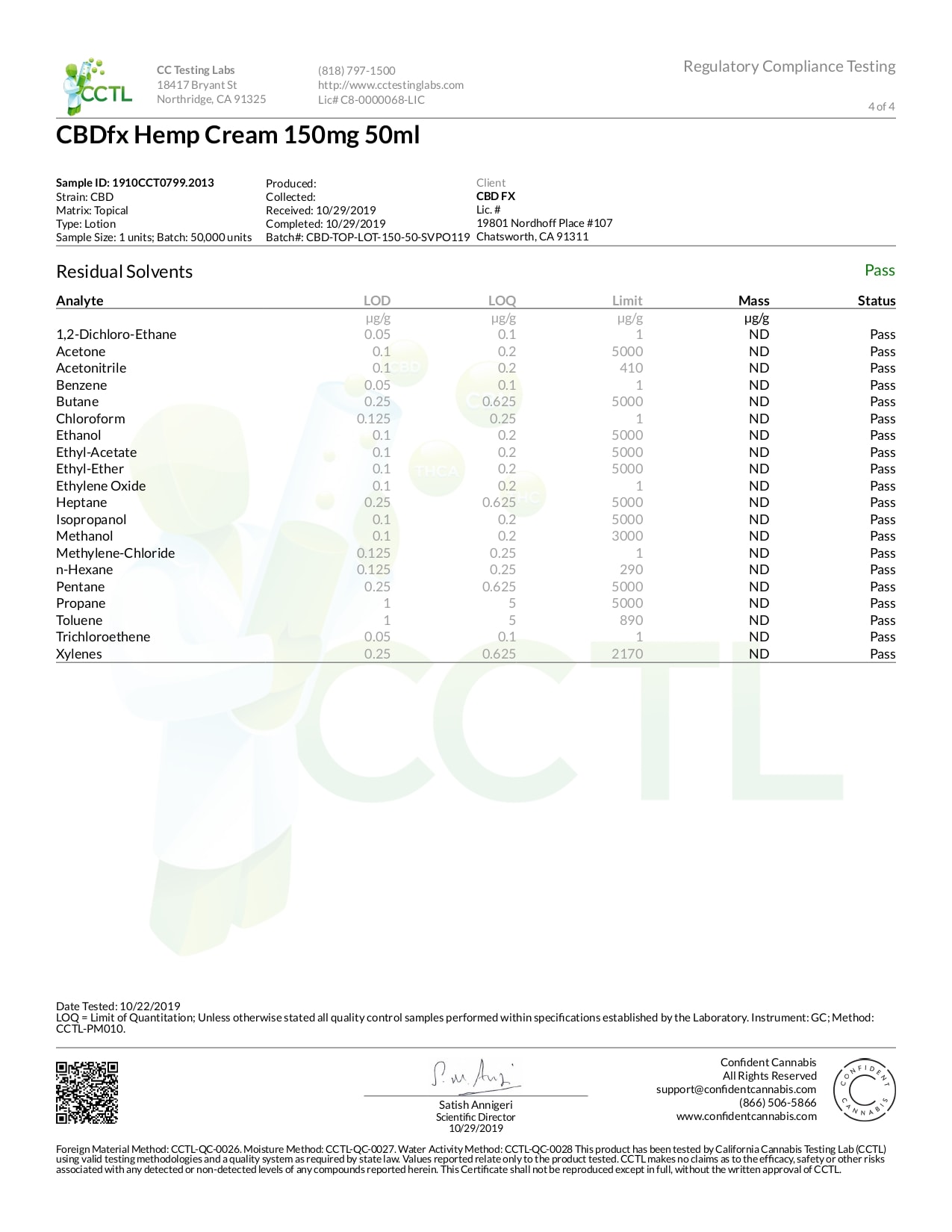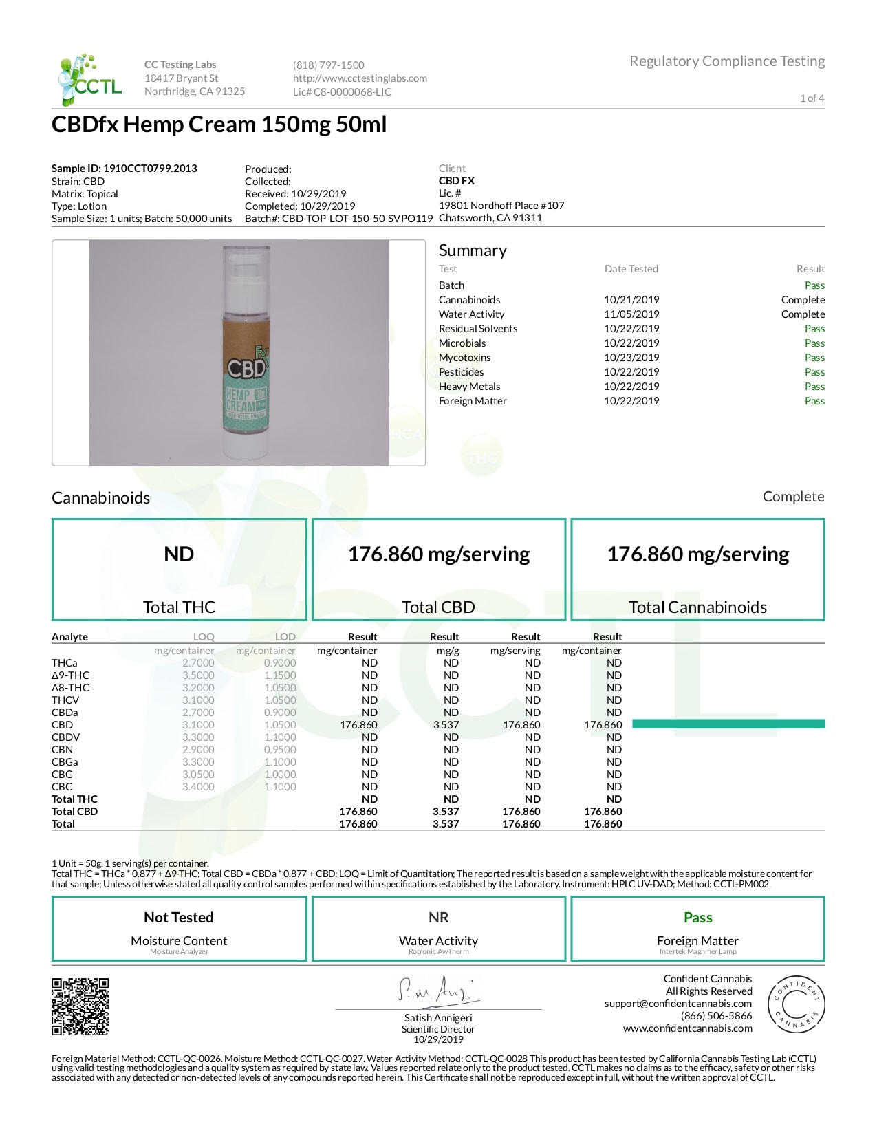 CBDfx CBD Cream 150mg Lab Report Broad Spectrum