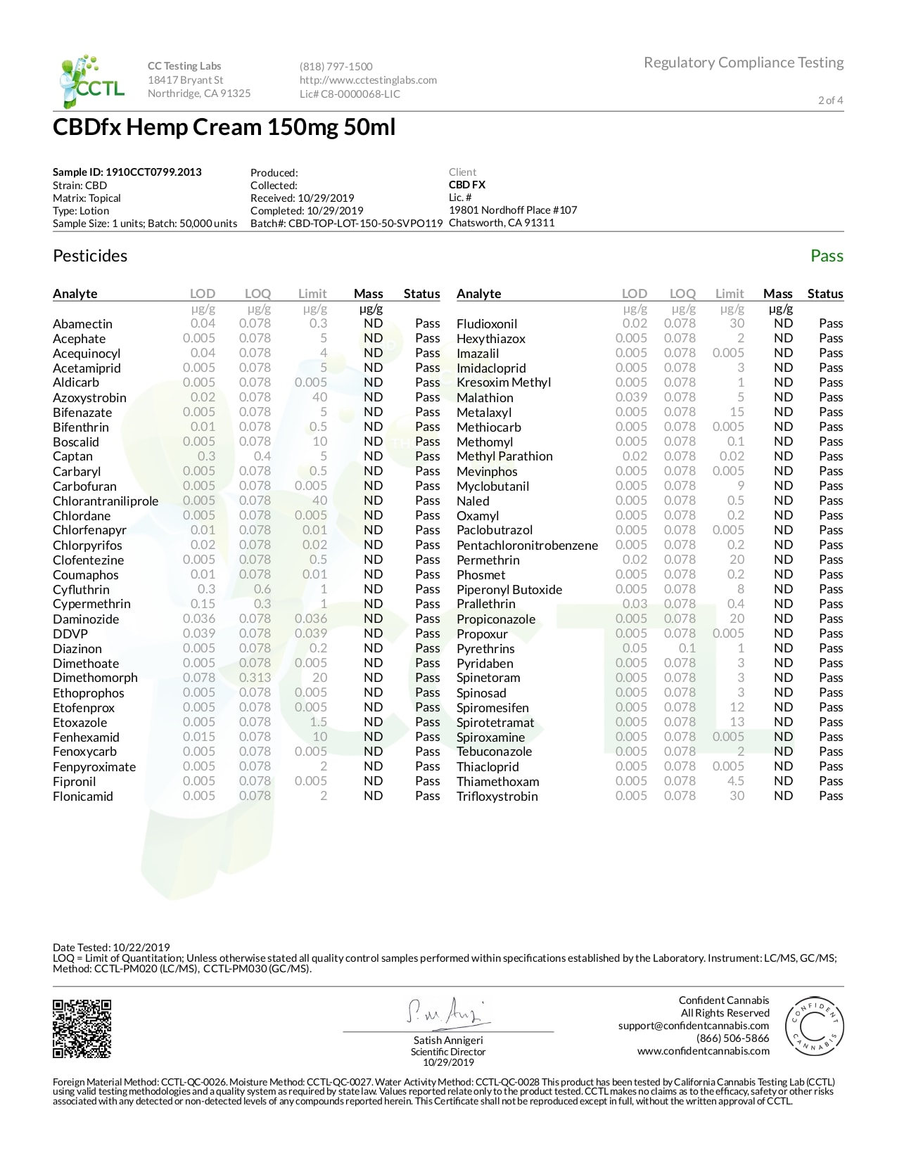 CBDfx Broad Spectrum CBD Cream 150mg Lab Report