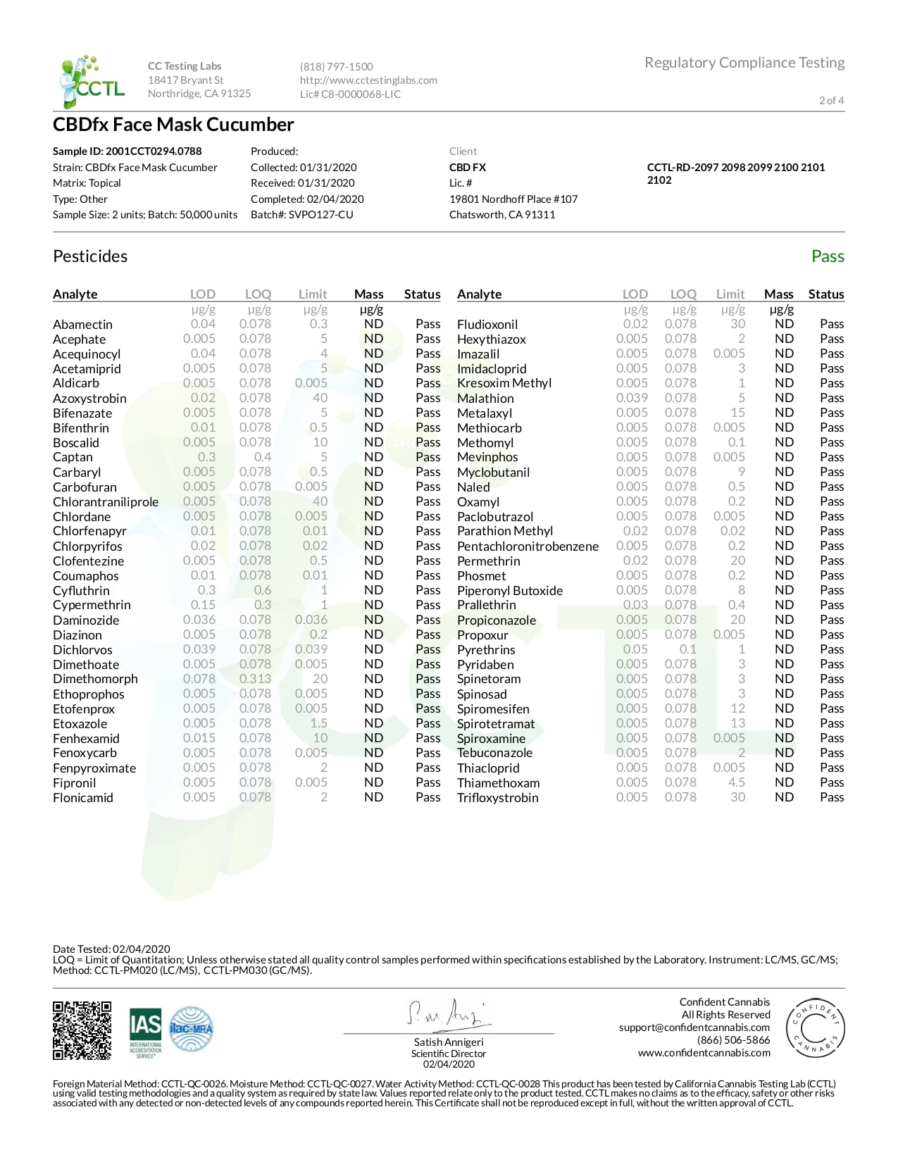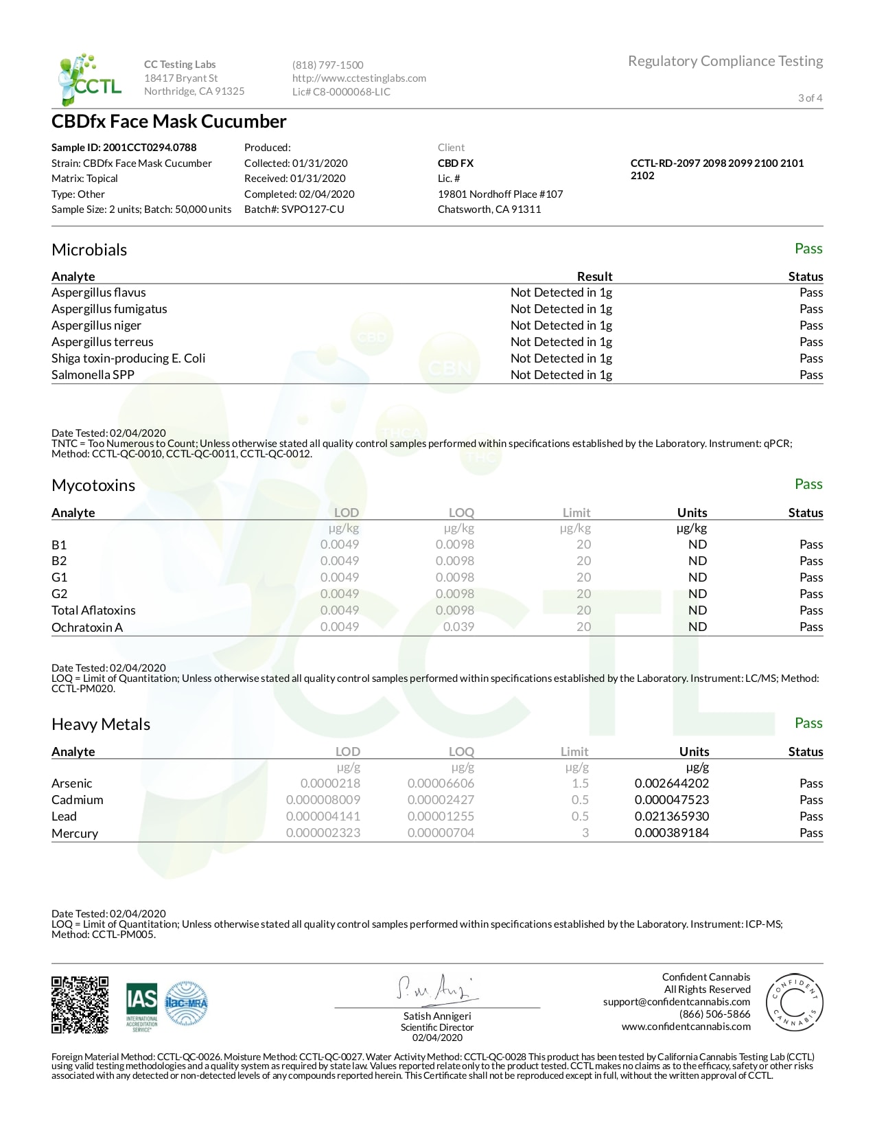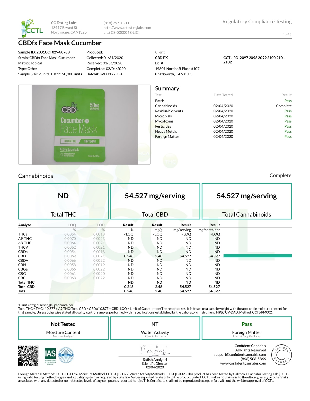 CBDfx CBD Cucumber Face Mask Lab Report Broad Spectrum 50mg