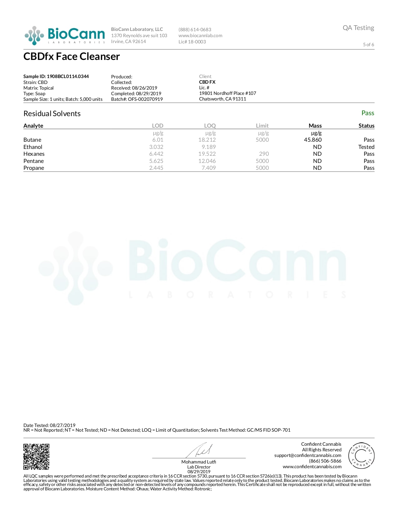 CBDfx Broad Spectrum CBD Face Cleanser Rejuvediol Lab Report