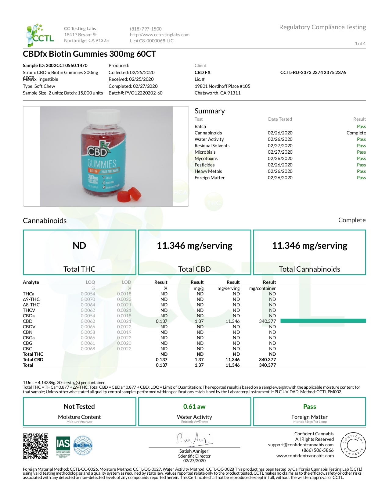 CBDfx Broad Spectrum CBD Gummies with Biotin Lab Reports test results with reference to CBD products.