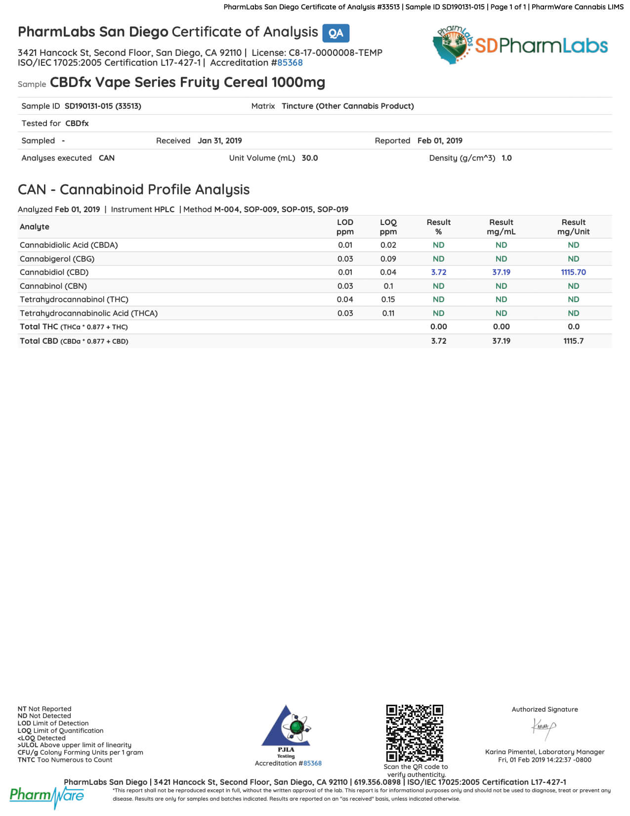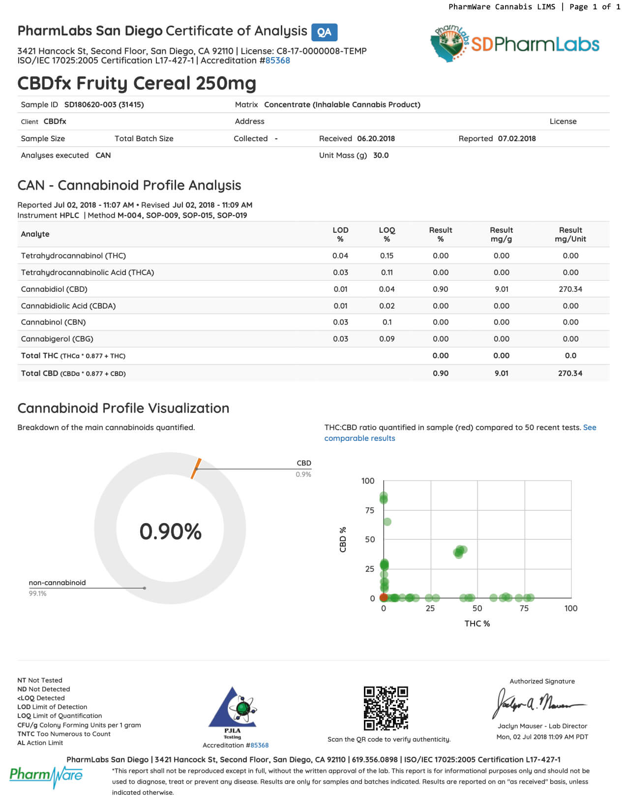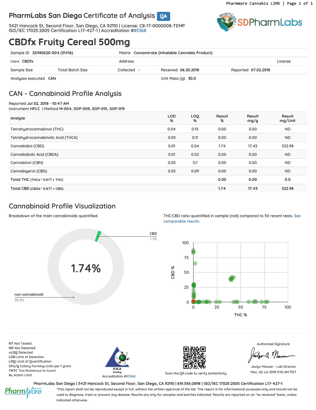 CBDfx Fruity Cereal CBD Vape Juice products lab report results providing you with the best knowledge available out there.