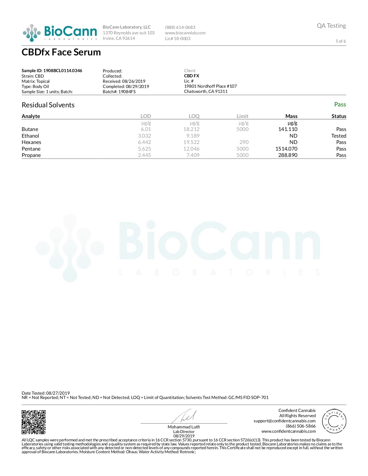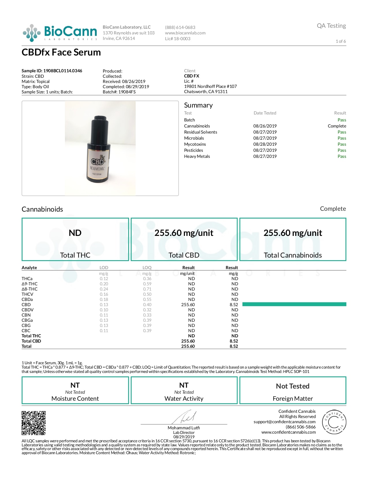 CBDfx CBD Face Oil Serum Lab Report Full Spectrum 250mg