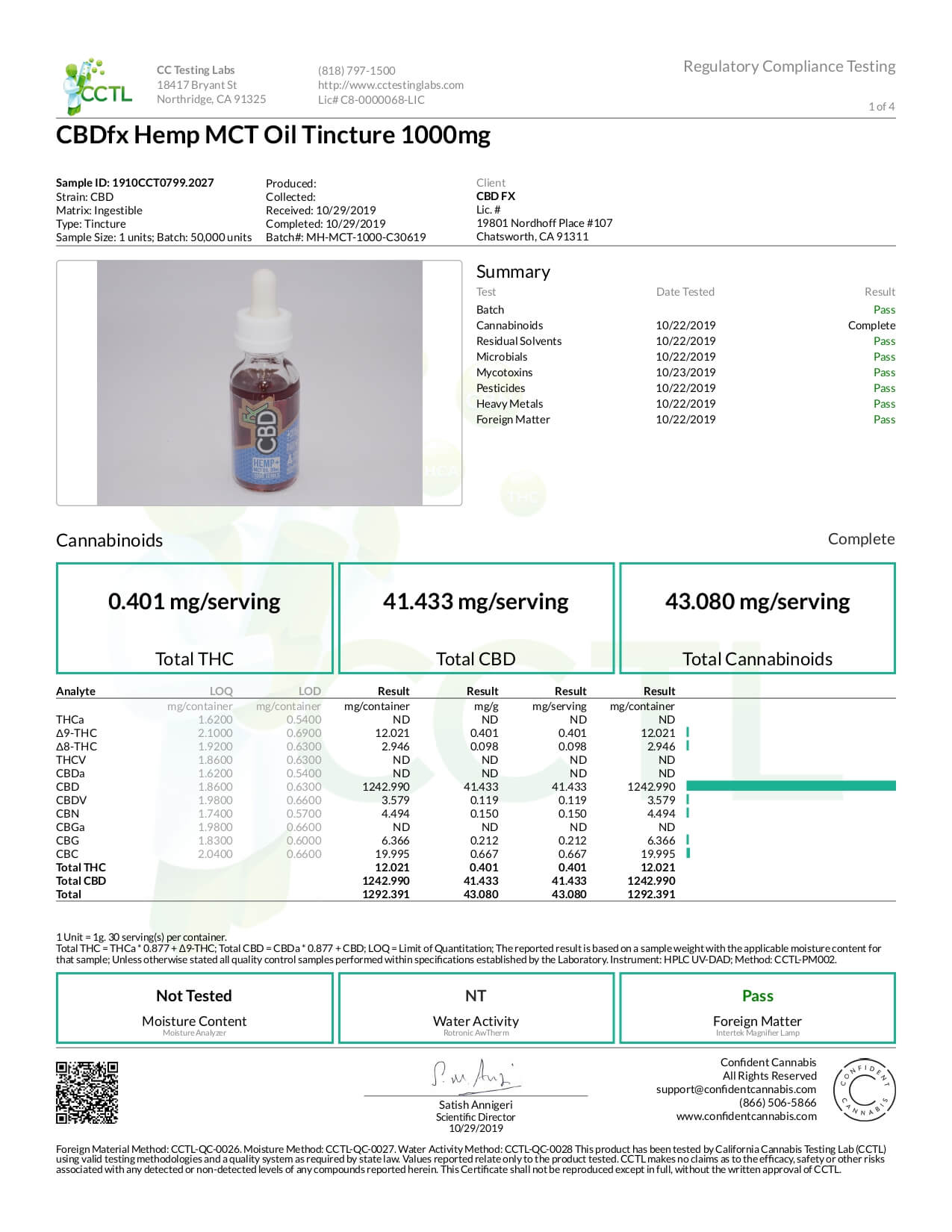 CBDfx CBD Tincture Oil Lab Report Full Spectrum 1000mg