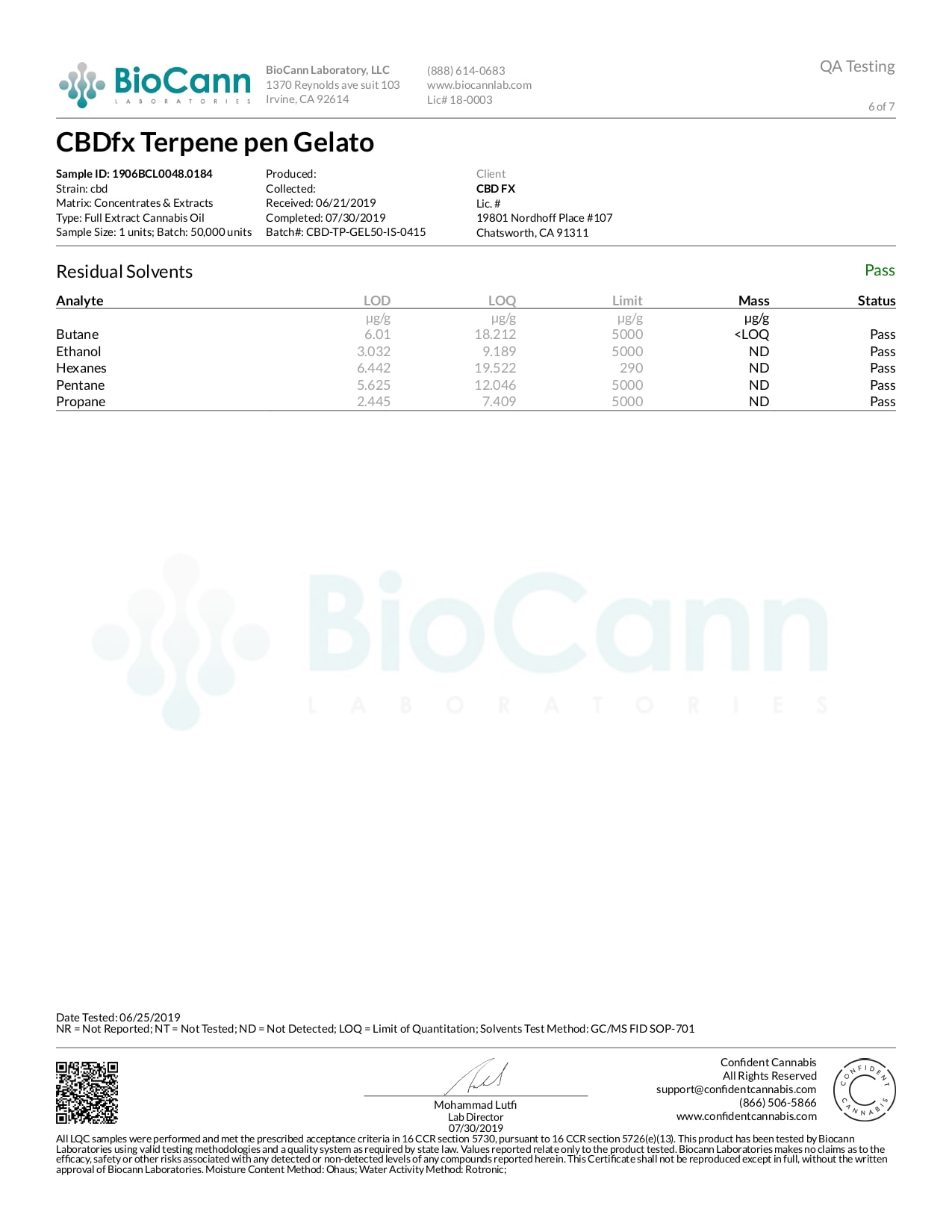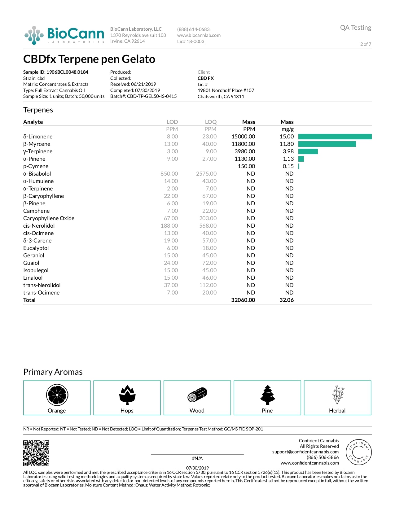 CBDfx Gelato CBD Terpenes Vape Pen Lab Report