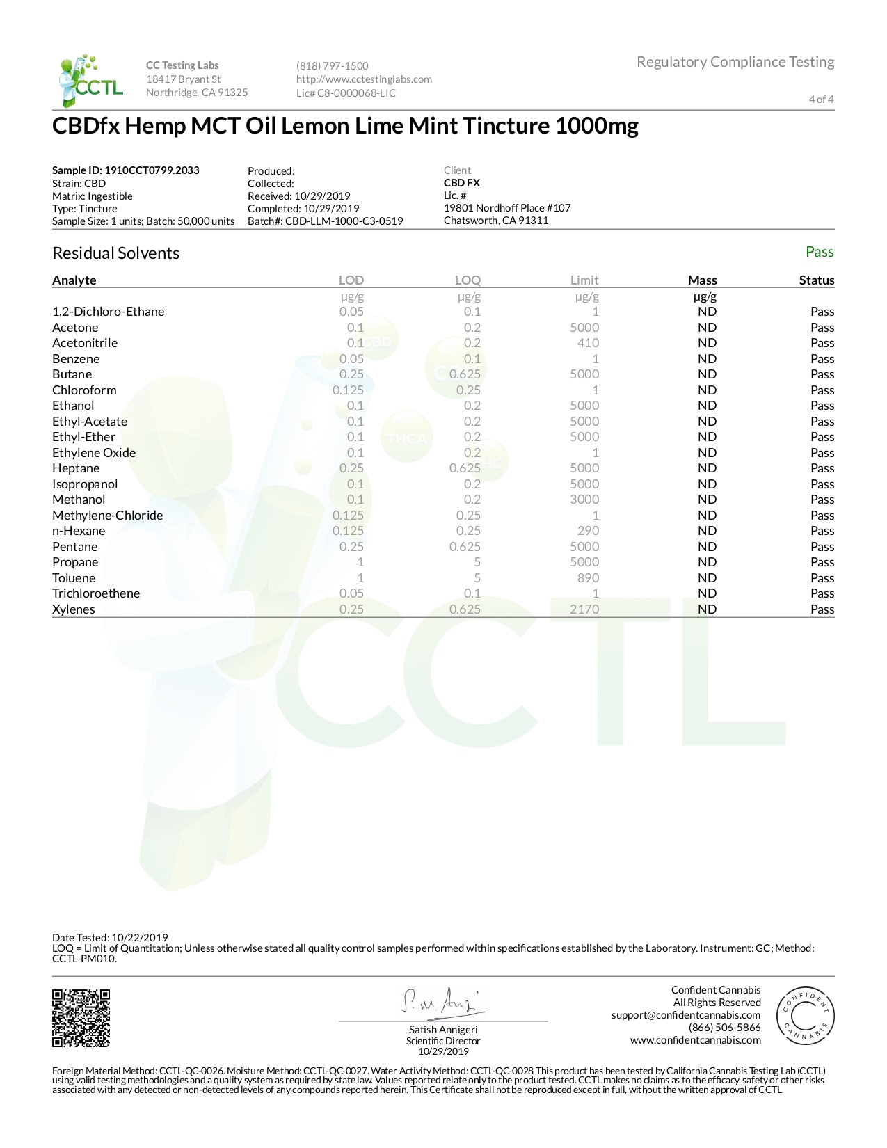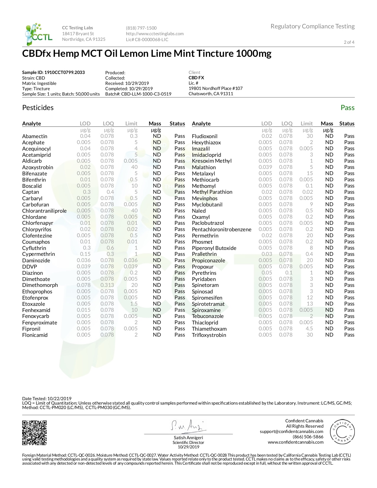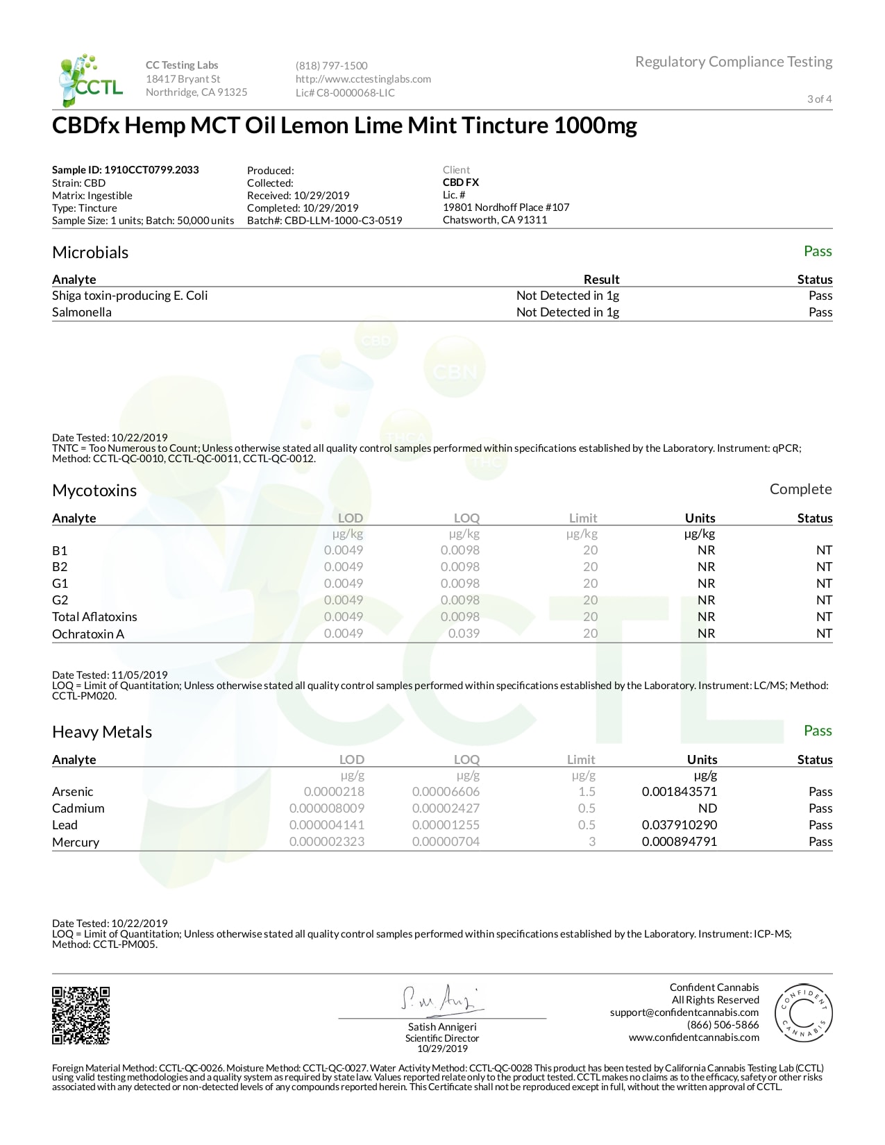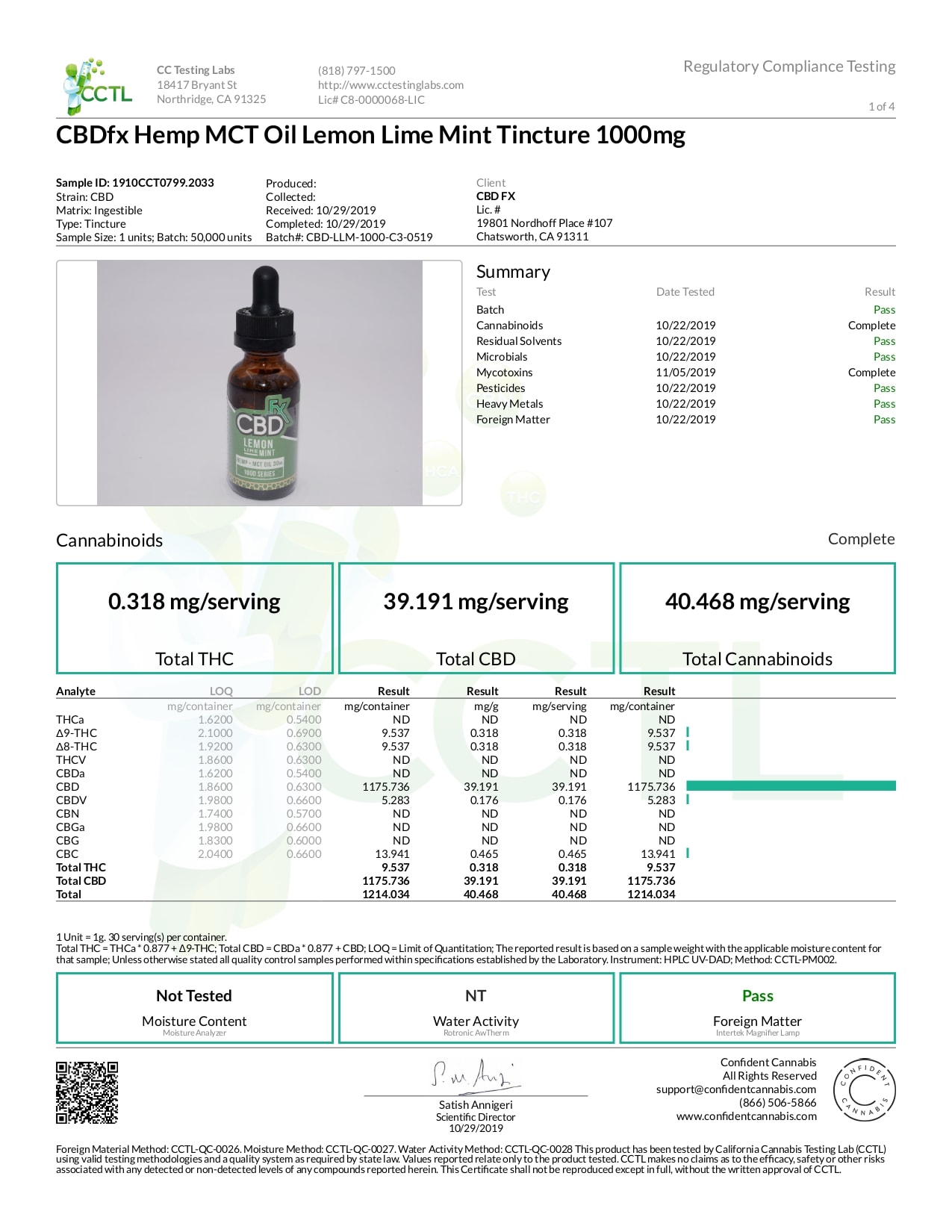 CBDfx Lemon Lime Mint Lab Report CBD Oil Tincture 1000mg