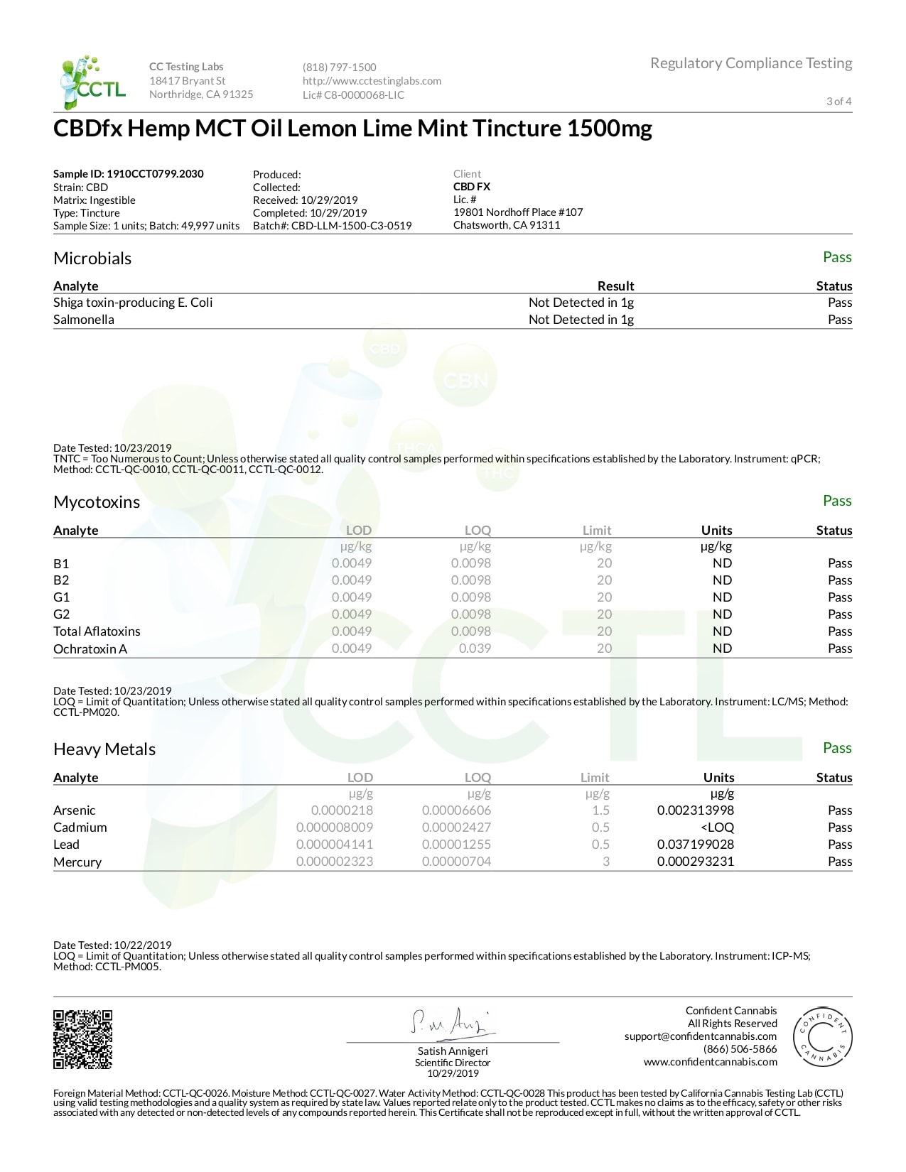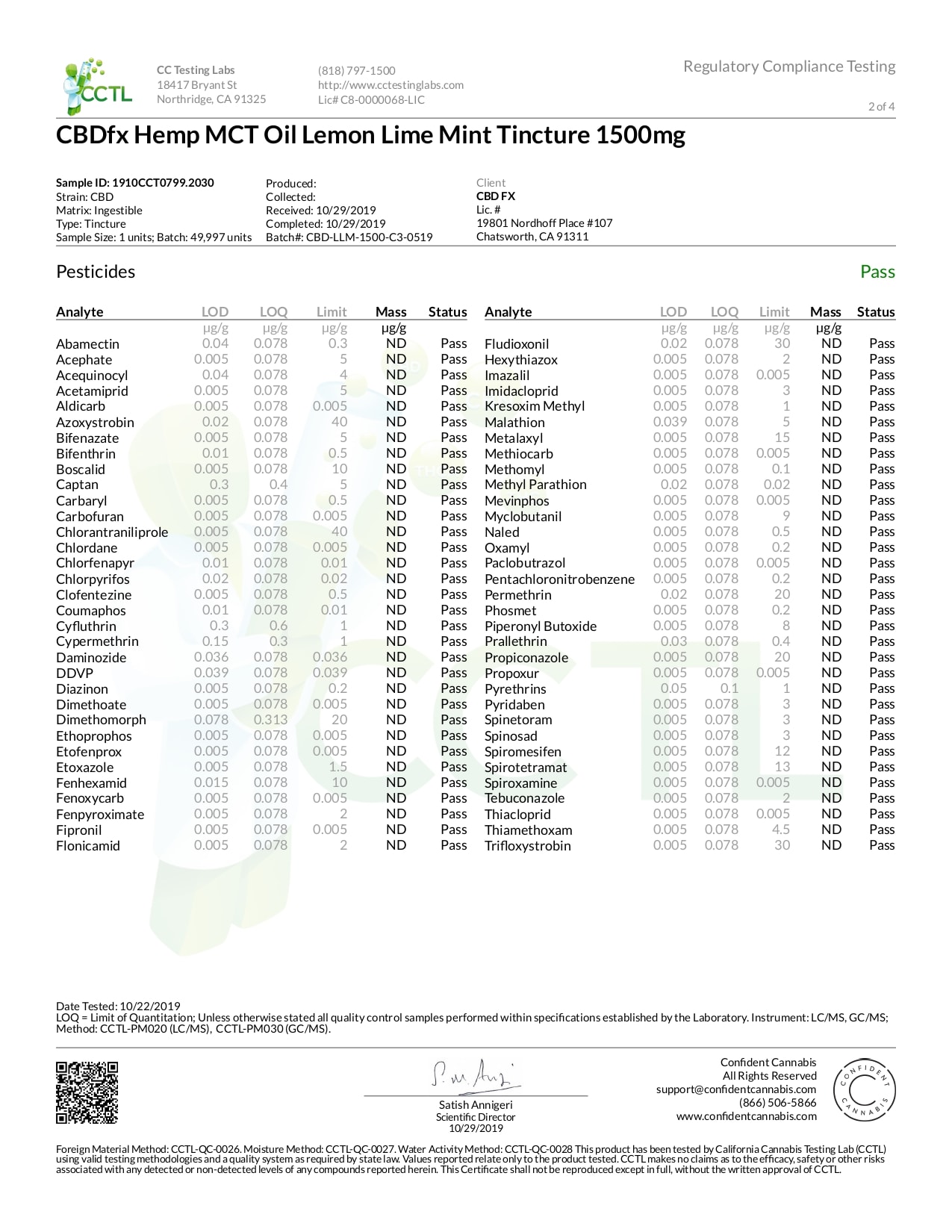 CBDfx Lemon Lime Mint Lab Report CBD Oil Tincture 500mg