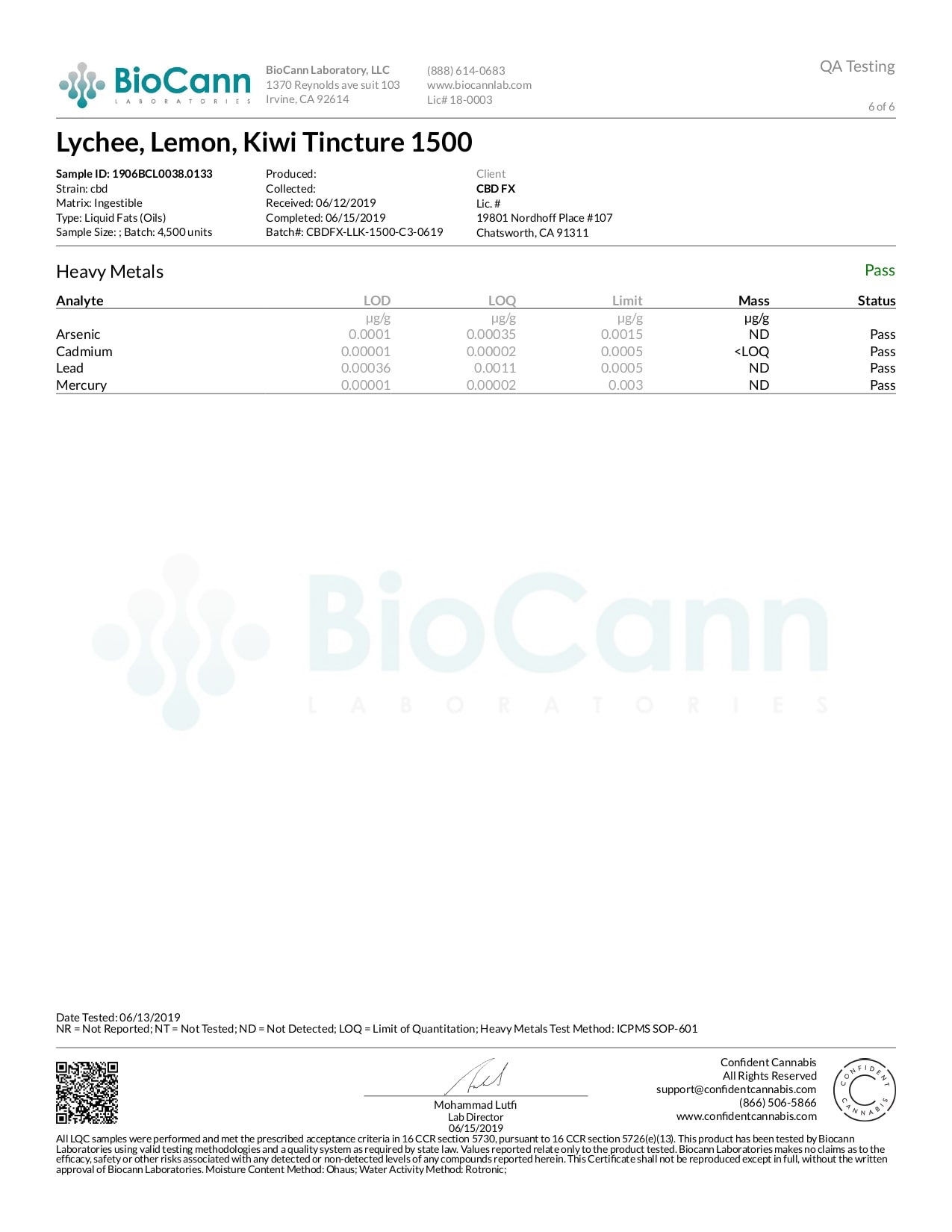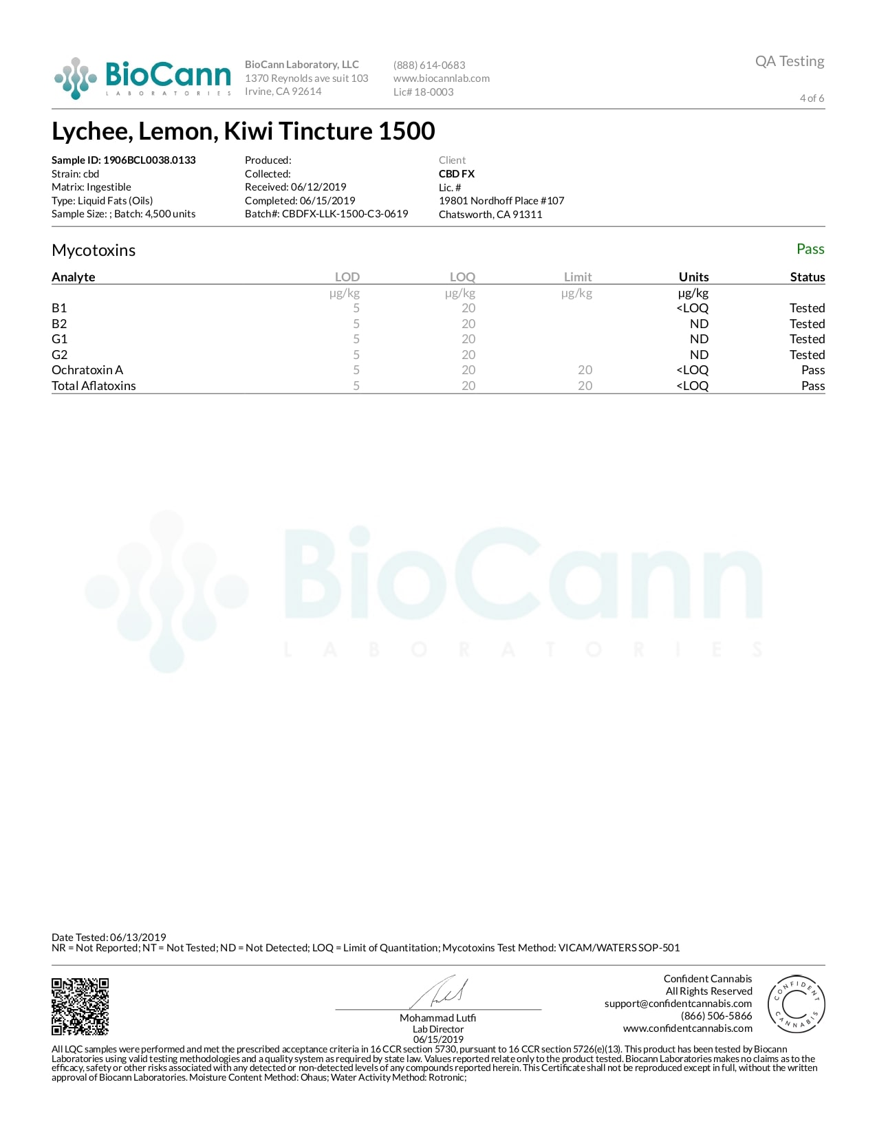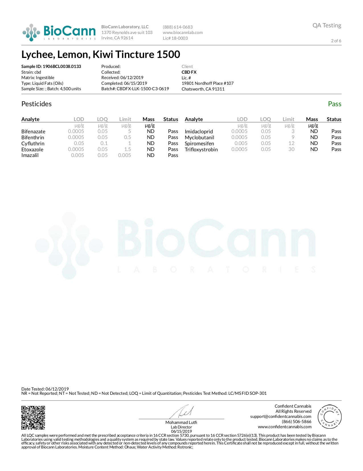 CBDfx Lychee Lemon Kiwi Lab Report CBD Oil Tincture 1500mg