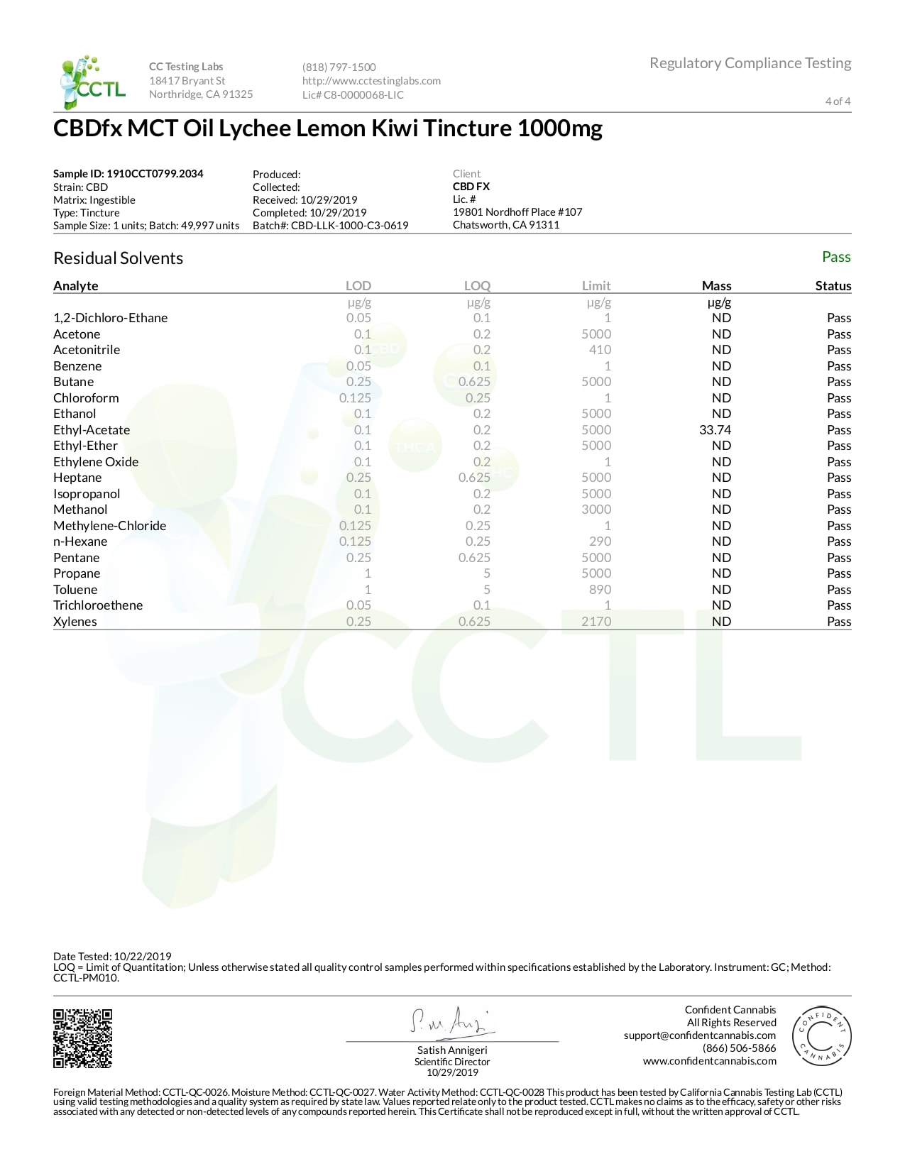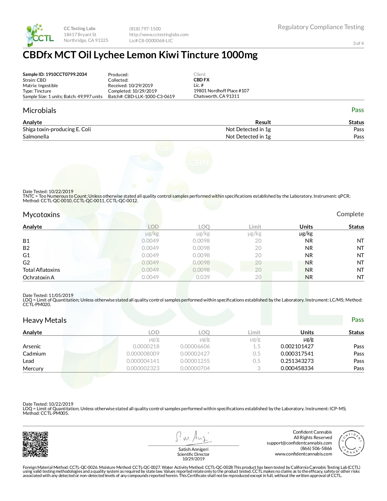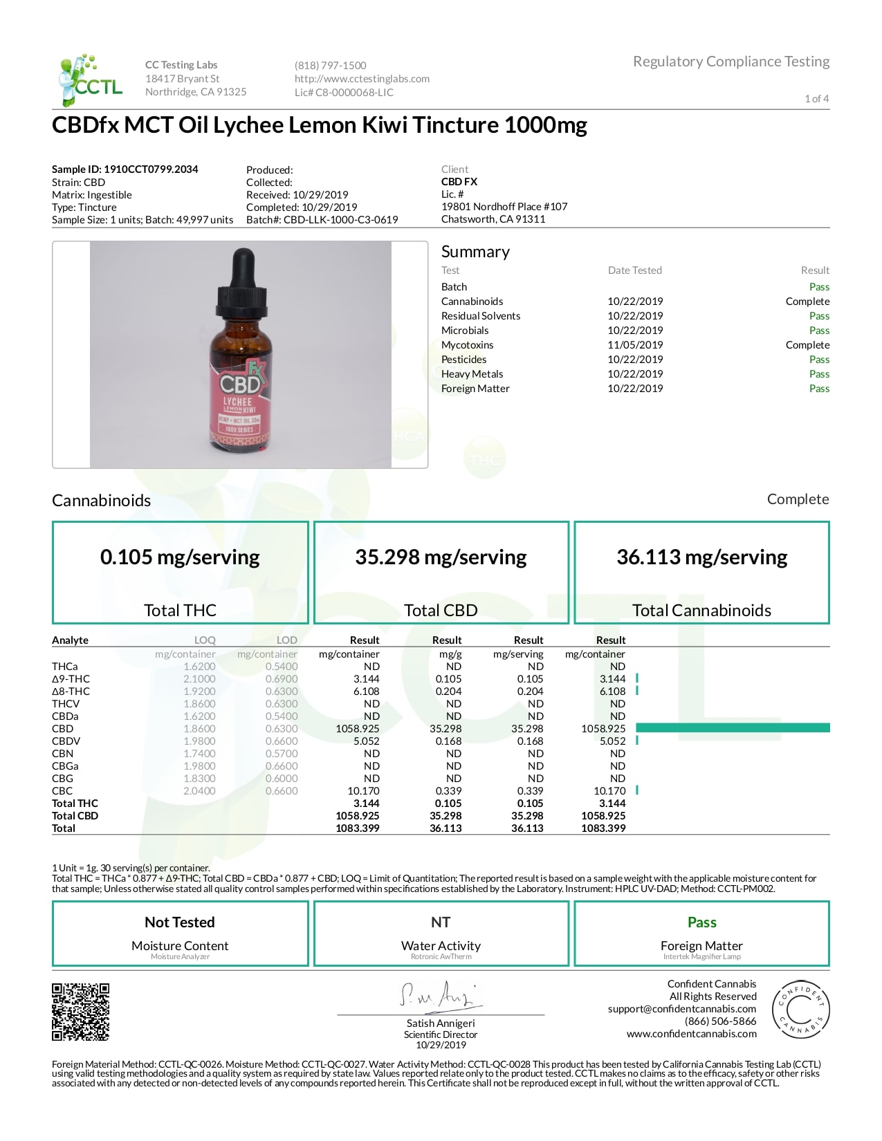CBDfx Lychee Lemon Kiwi Lab Report CBD Oil Tincture 1000mg