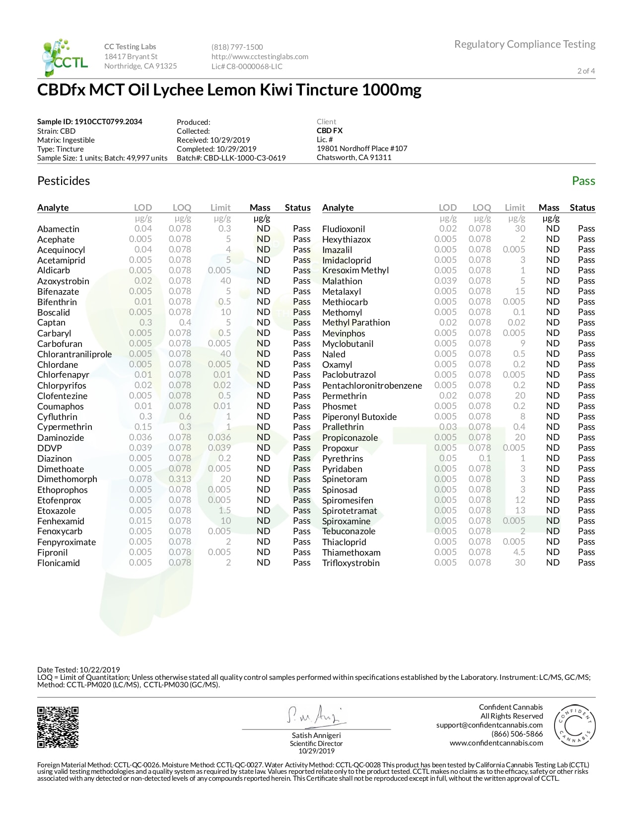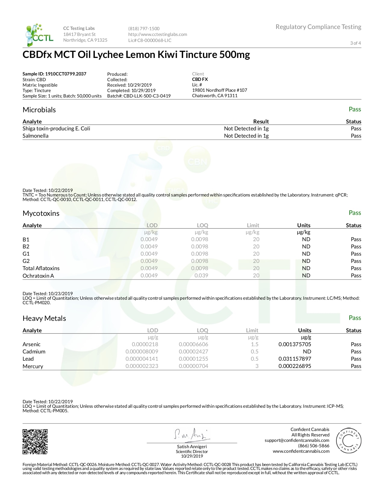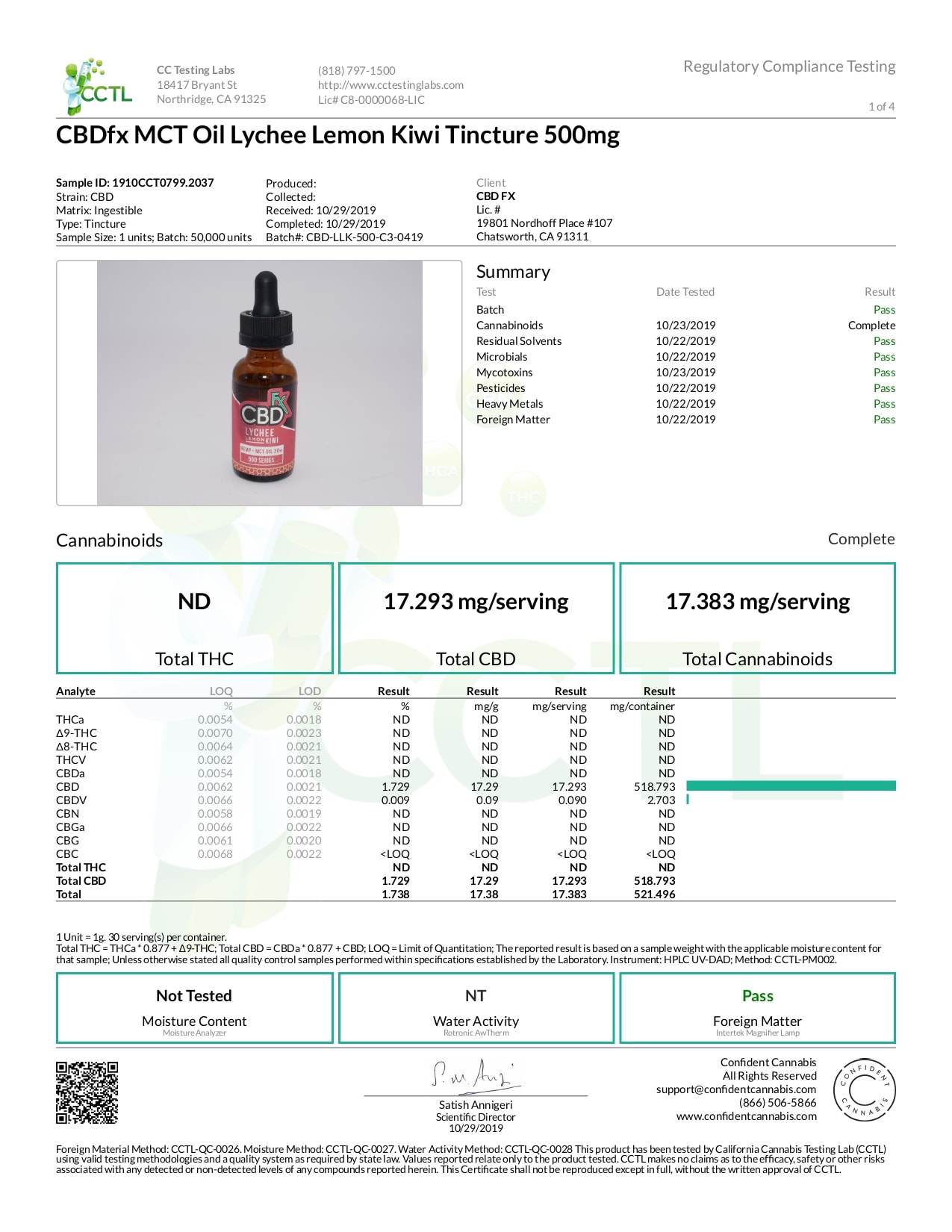 CBDfx Lychee Lemon Kiwi Lab Report CBD Oil Tincture 500mg